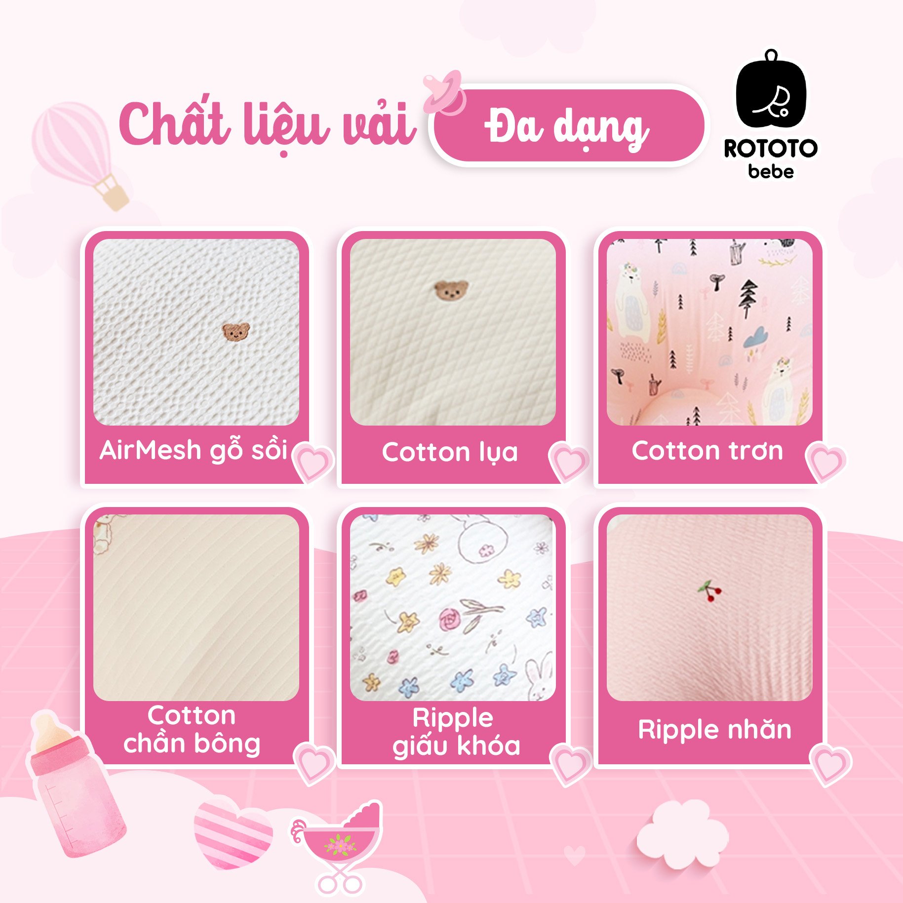 Rototo Bebe là thương hiệu vô cùng nổi tiếng tại Hàn Quốc với nhiều sản phẩm dành cho bé vô cùng chất lượng, trong đó có gối chống trào ngược Rototo Bebe, giúp khắc phục tối đa tình trạng trào ngược dạ dày ở trẻ sơ sinh, giúp cho mẹ không cần lo lắng về việc bé bị trớ khi uống sữa. Ngoài công dụng chống trào ngược, gối Rototo Bebe còn có thể làm đệm ngủ, đệm nằm chơi, ngồi chơi cho bé. Ruột gối được làm bằng chất Liệu Polyester cao ấp mang lại cảm giác êm ái, đô nghiêng của gối là 30 độ, giống với tư thế của bé khi nằm trong bụng mẹ nên sẽ mang lại cho bé cảm giác thoải mái dễ chịu khi nằm ở trên gối. Chất liệu vỏ gối Ripple nhăn thoáng mát cao cấp là mẫu vải được yêu thích nhất hiện nay, thoáng mát và phân tán mồ hôi rất tốt, vải được luộc khử trùng và nhuộm bằng nguyên liệu hữu cơ nên không làm ảnh hưởng đến làn da nhạy cảm của bé sơ sinh. Vỏ gối Cotton cao cấp là một trong những mãu mới nhất của Rototo Bebe, vỏ gối mang lại cảm giác thoải mái cho bé khi nằm.