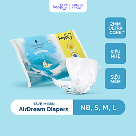 Tã / Bỉm Hoppi AirDream không có lông tơ, không chứa clo và là loại tã mỏng nhất trên thị trường! Được tạo thành từ cấu trúc 7 lớp có độ nén cao, Công nghệ UltraCore 2mm của chúng tôi đưa khả năng hấp thụ lên một tầm cao mới.