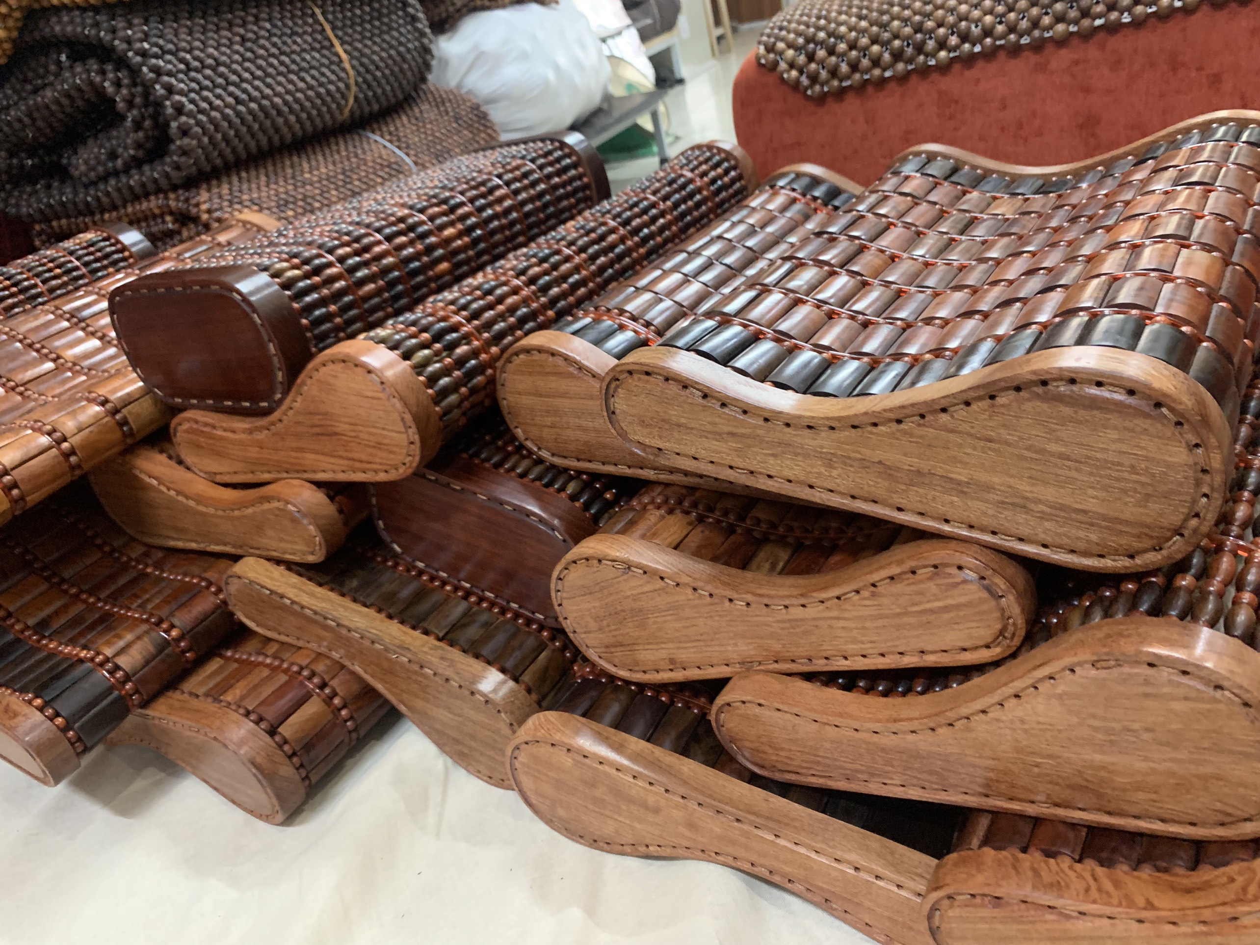 CHIẾU HẠT GỖ HƯƠNG ĐỎ CAO CẤP ( ) : - Chất liệu : 100% gỗ Hương tự nhiên - Kích thước chiếu : 2,2mx2m - Kích thước hạt : 1,2cm ( kích thước hạt