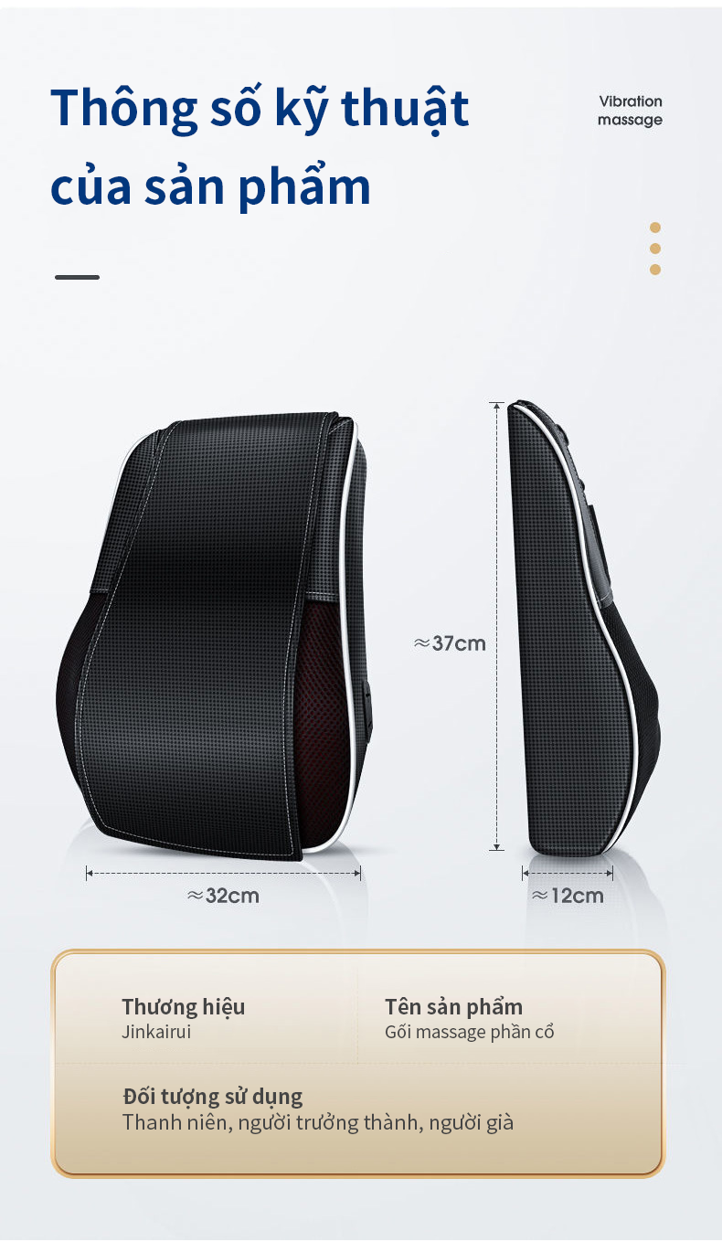 Massage nhẹ nhàng, thư giãn các vùng cơ chịu nhiều áp lực Thiết kế di động, lý tưởng để mang đi du lịch Có thể điều chỉnh tiện lợi với bảng điều khiển tích hợp