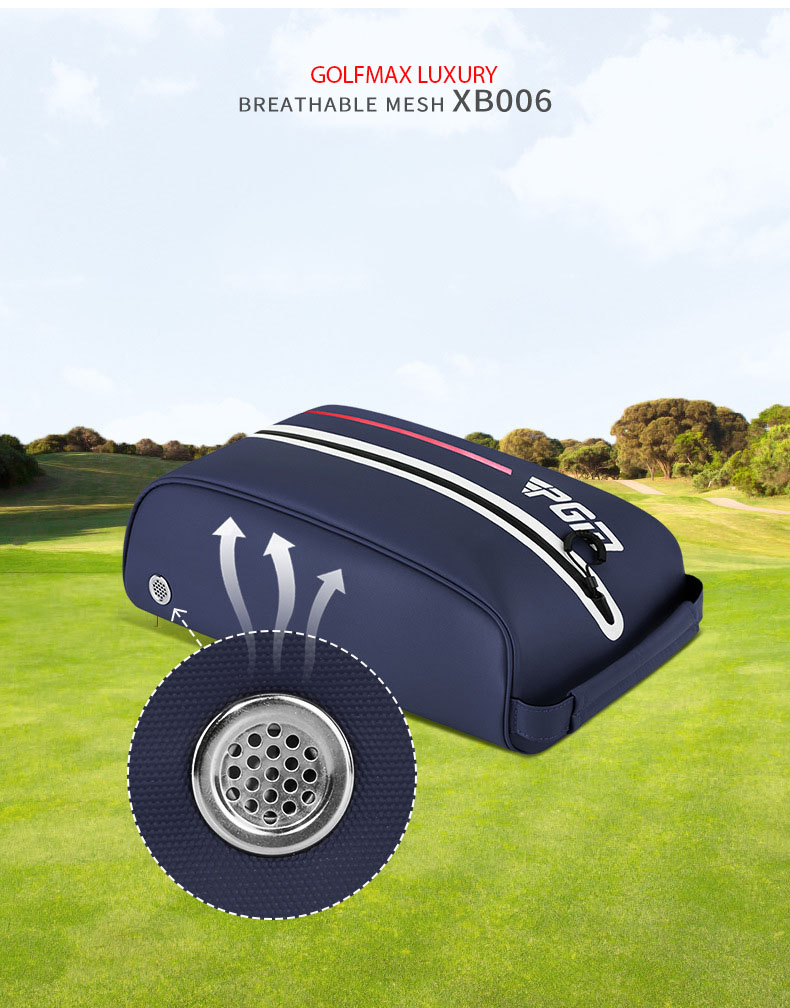 Túi đựng giày golf PGM-XB006 được làm bằng chất liệu vải Nylon cao cấp chống thấm nước.Thiết kế lưới thoáng khí bên hông túi có khả năng chống mùi khó chịu và thoát khí tốt hơn. 1. Thông tin sản phẩm: - Thương hiệu: PGM - Túi đựng giày golf nam nữ : XB006 - Màu sắc: Xanh, Đỏ, Trắng - Giới tính: Nữ - Kích thước: 32.5cm x 22cm x 13cm - Trọng lượng khoảng:0.2KG 2.Thương hiệu PGM – PGM là hãng sản xuất chuyên về dụng cụ Golf cung cấp khắp các nước Bắc Mỹ, Trung Á và Đông Nam Á –PGM là thương hiệu lớn tại Trung Quốc. với tiêu chuẩn sản xuất chất lượng châu âu. Và cũng