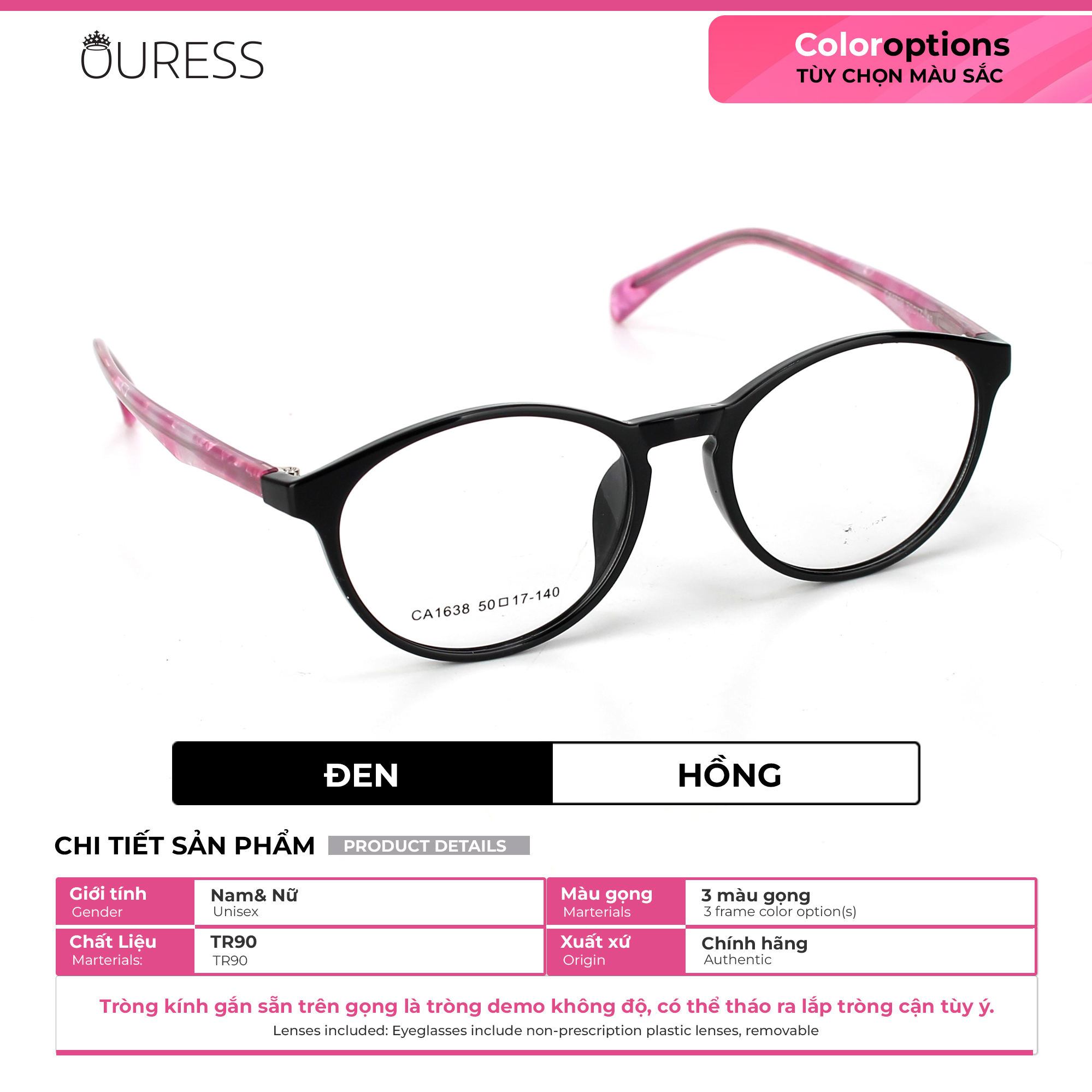 ✨Gọng kính nhựa dẻo tr90 thời trang nam nữ Ouress CA1638