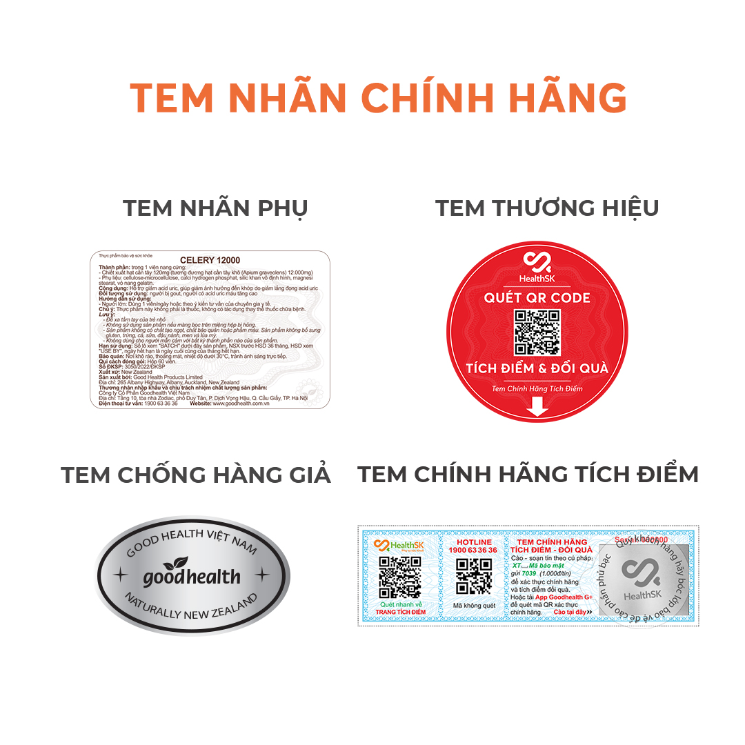 - Hỗ trợ giảm đau và giảm viêm khớp do gout CÔNG DỤNG Thực phẩm BVSK Goodhealth Celery 12,000 – Hạt Cần Tây hỗ trợ Gout – chứa hàm lượng hạt cần tây cao – đây là loại dược liệu truyền thống giúp hỗ trợ triệu chứng bệnh gout và cân bằng acid uric trong cơ thể, hỗ trợ đường tiết niệu và dịch cơ thể. THÀNH PHẦN Thành phần trong 1 viên nang cứng Goodhealth Celery Chiết xuất hạt cần tây – Tương đương với hạt cần tây khô 12,000 mg ĐỐI TƯỢNG SỬ DỤNG