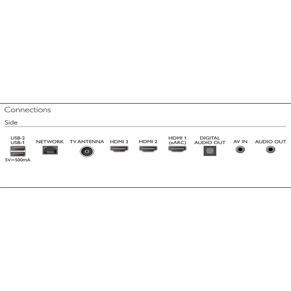 • Cổng kết nối: HDMI x 3 (HDMI eARC x 1), USB x 2, RJ45, Bluetooth 5.1, Wi-Fi 802.11ac, Cổng Audio out (optical), 3.5mm jack x2