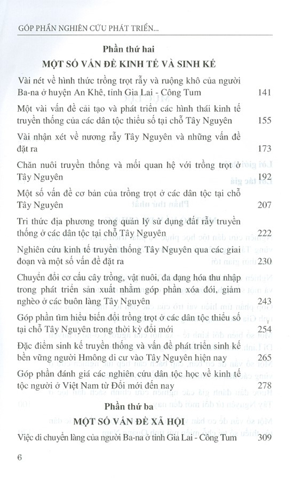 Sách là những nghiên cứu về những lĩnh vực kinh tế và sinh kế, xã hội và văn hóa, cũng như đời sống về mọi mặt của các tộc người vùng Trường Sơn - Tây Nguyên, gồm 5 phần: Một số vấn đề chung; Một số vấn đề về kinh tế và sinh kế; Một số vấn đề về xã hội; Một số vấn đề về văn hóa; Thực trạng phát triển và một số vấn đề phát triển bền vững các dân tộc thiểu số tại chỗ vùng Trường Sơn Tây Nguyên.