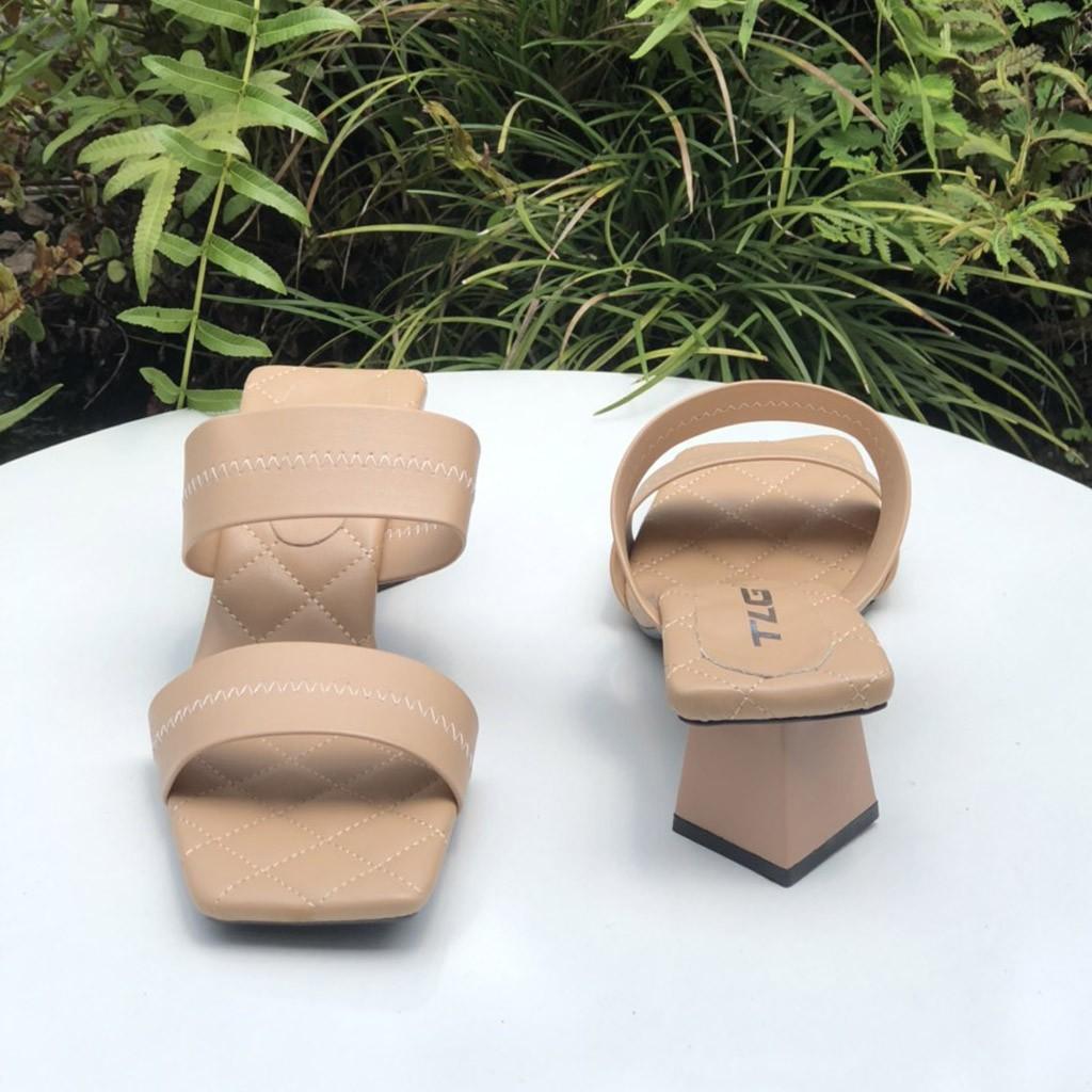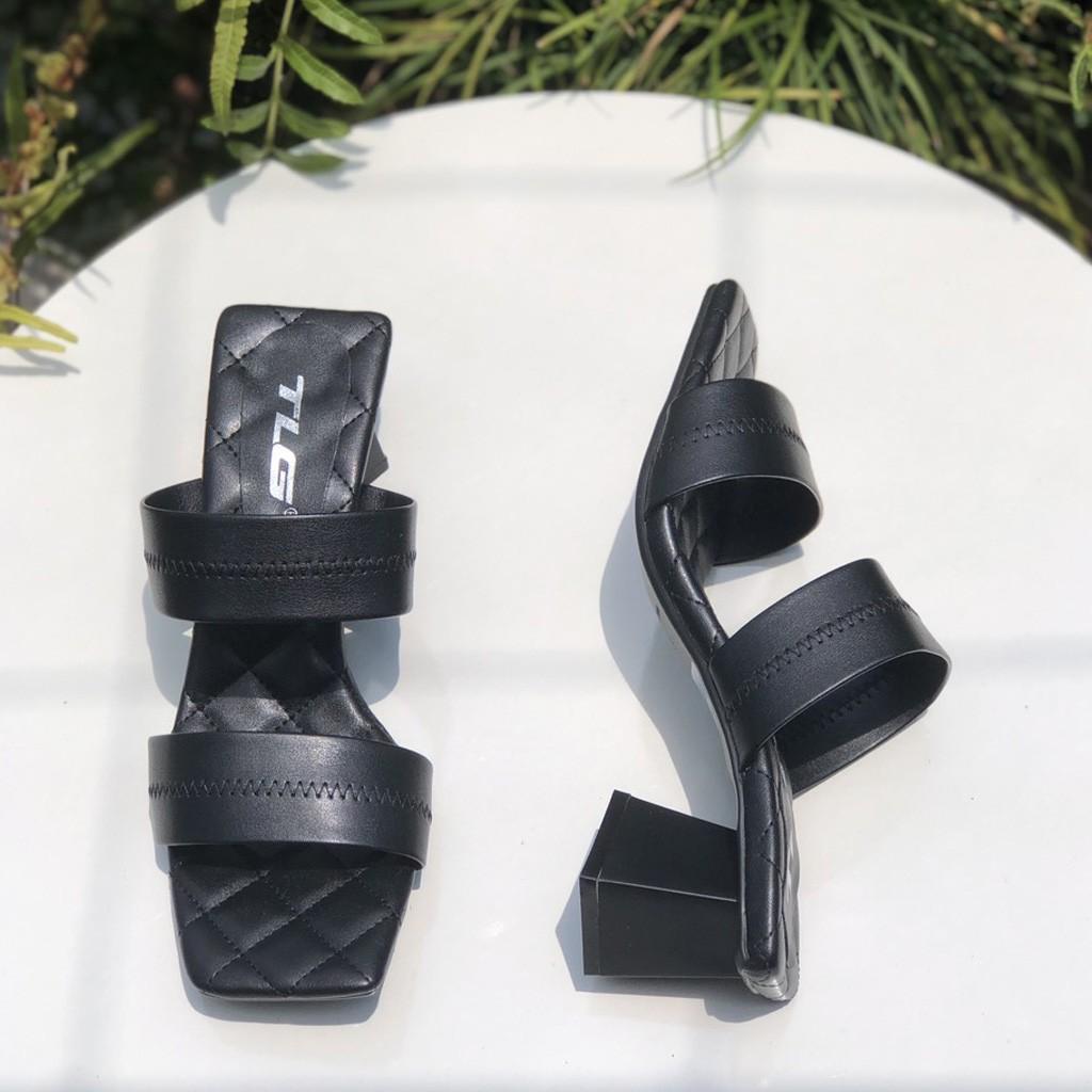 - Dép nữ cao gót quai ngang một bản TRường Hải màu đen gót vuông 8cm da mềm DN139 thiết kế với kiểu dáng ôm chân, thon gọn, thoải mái di chuyển mà không lo