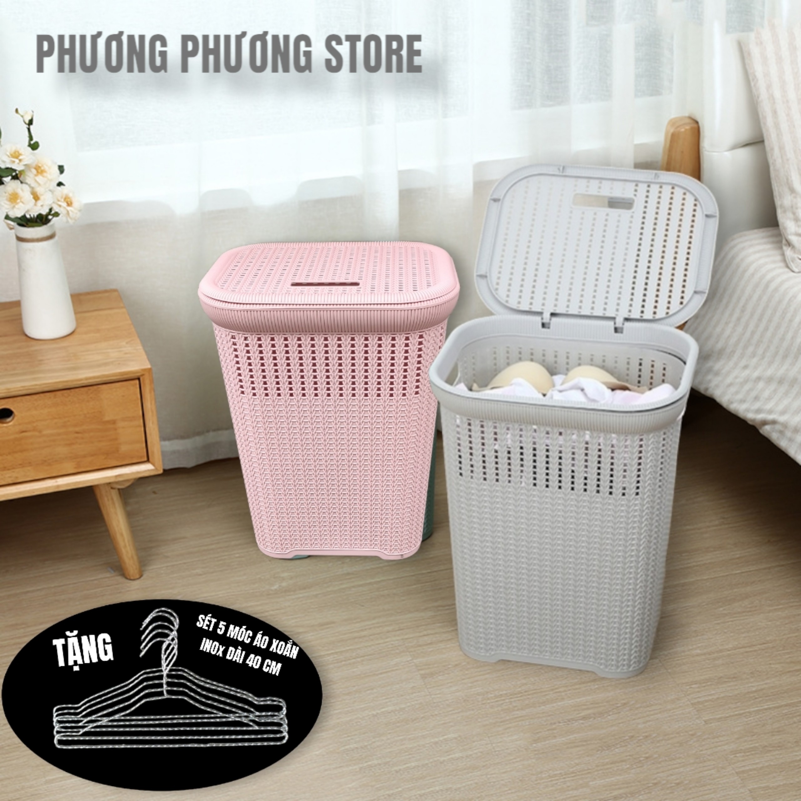 ✨( HÀNG CAO CẤP ) Giỏ đựng đồ quần áo có nắp Hàn Quốc Kiểu Dáng Đan Mây( Tặng Sét 5 Móc áo Inox Xoắn Dài 40cm )