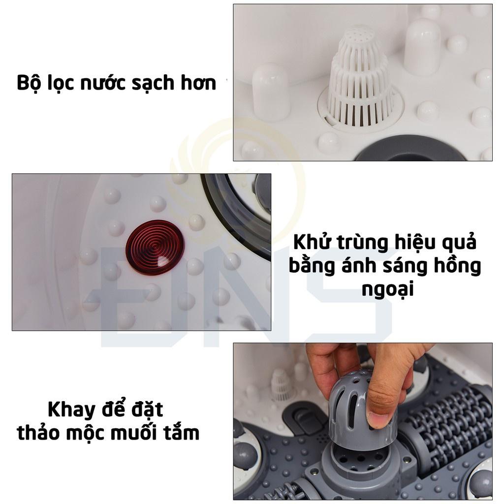 - Xông hơi bằng công nghệ siêu âm - Kiểm soát mức nhiệt hơi tự động với 3 chế độ cài đặt - Massage con lăn kích thích các điểm huyệt dưới gan bàn chân