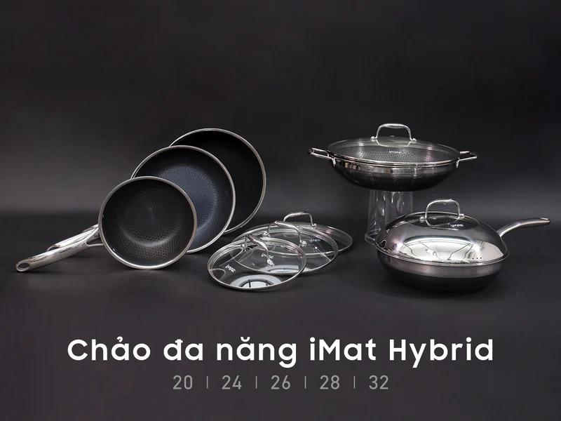 CAM KẾT PHÂN PHỐI SẢN PHẨM CHÍNH HÃNG BẢO HÀNH ĐỔI MỚI CHO LỚP SẢN CHỐNG DÍNH BONG TRÓC TRONG 12 THÁNG. Chảo đa năng iMat Hybrid là sự kết hợp giữa chất liệu inox
