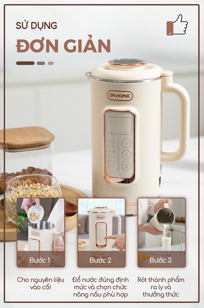 Với thiết kế nhỏ gọn và đa dạng chức năng, máy làm sữa hạt AN60 của DrHomie mang tới cho khách hàng trải nghiệm thú vị và tiện lợi trong quá trình nấu nướng.