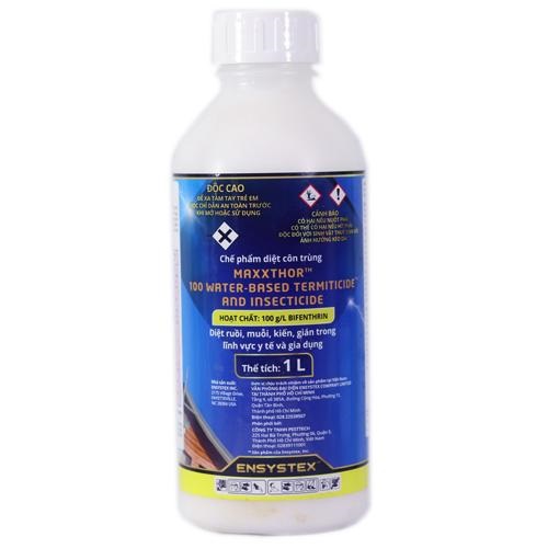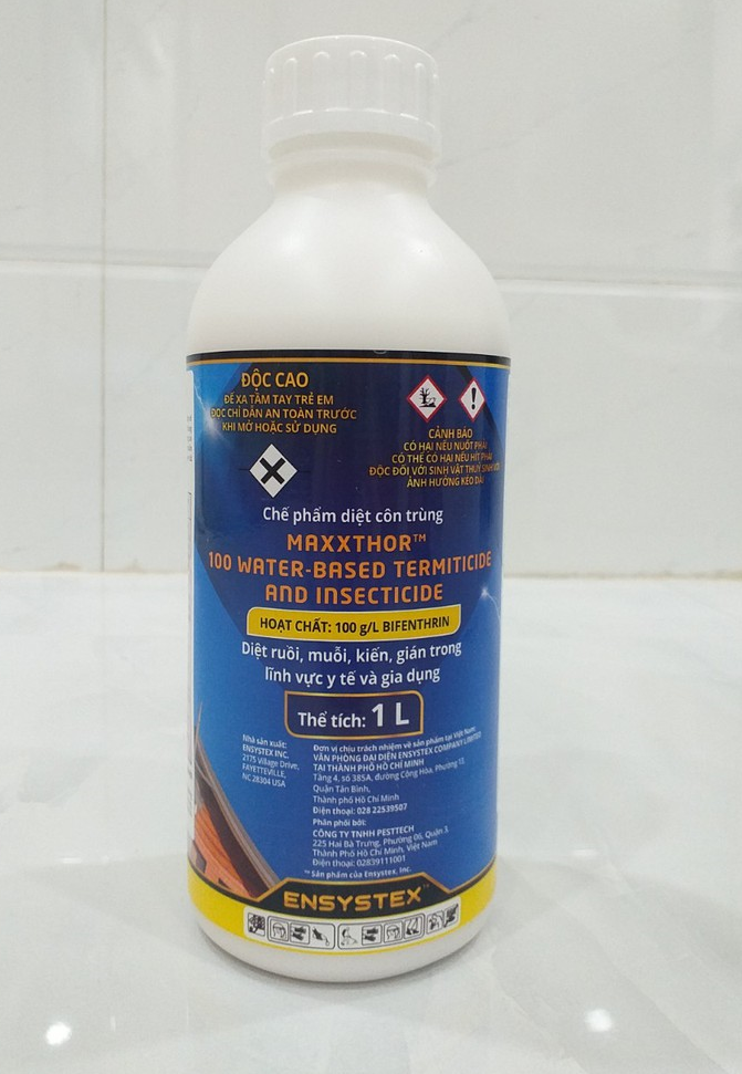 Cty nhập khẩu : Cty TNHH Ensystex VN Cty phân phối : Cty TNHH TM DT Đại Hoàng Gia   thành phần : Bifenthrin 10%     Maxxthor 100 là chế phẩm diệt côn trùng có hiệu lực cao và tồn lưu lâu, giúp tiêu diệt hiệu quả các loài côn trùng như: ruồi, muỗi, kiến, gián, ve, bọ ché Ưu điểm :   - Hạ gục nhanh   - Ko mùi   - Tồn lưu lâu ( từ 6-8 tuần)   - Nhập Mỹ của Tập đoàn nổi tiếng ENSYSTEX - Sử dụng hoạt chất tiên tiên Bifenthrin theo tiêu chuẩn an toàn của Mỹ   Tỉ lệ pha : 20 ml cho 1lít nướcCách phun : phun tất cả các nơi mà côn trùng có thể trú ẩn, phun bề mặt tường vì chế phẩm tồn lưu trên tường và các góc tối Sản phẩm này là tài sản cá nhân được bán bởi Nhà Bán Hàng Cá Nhân