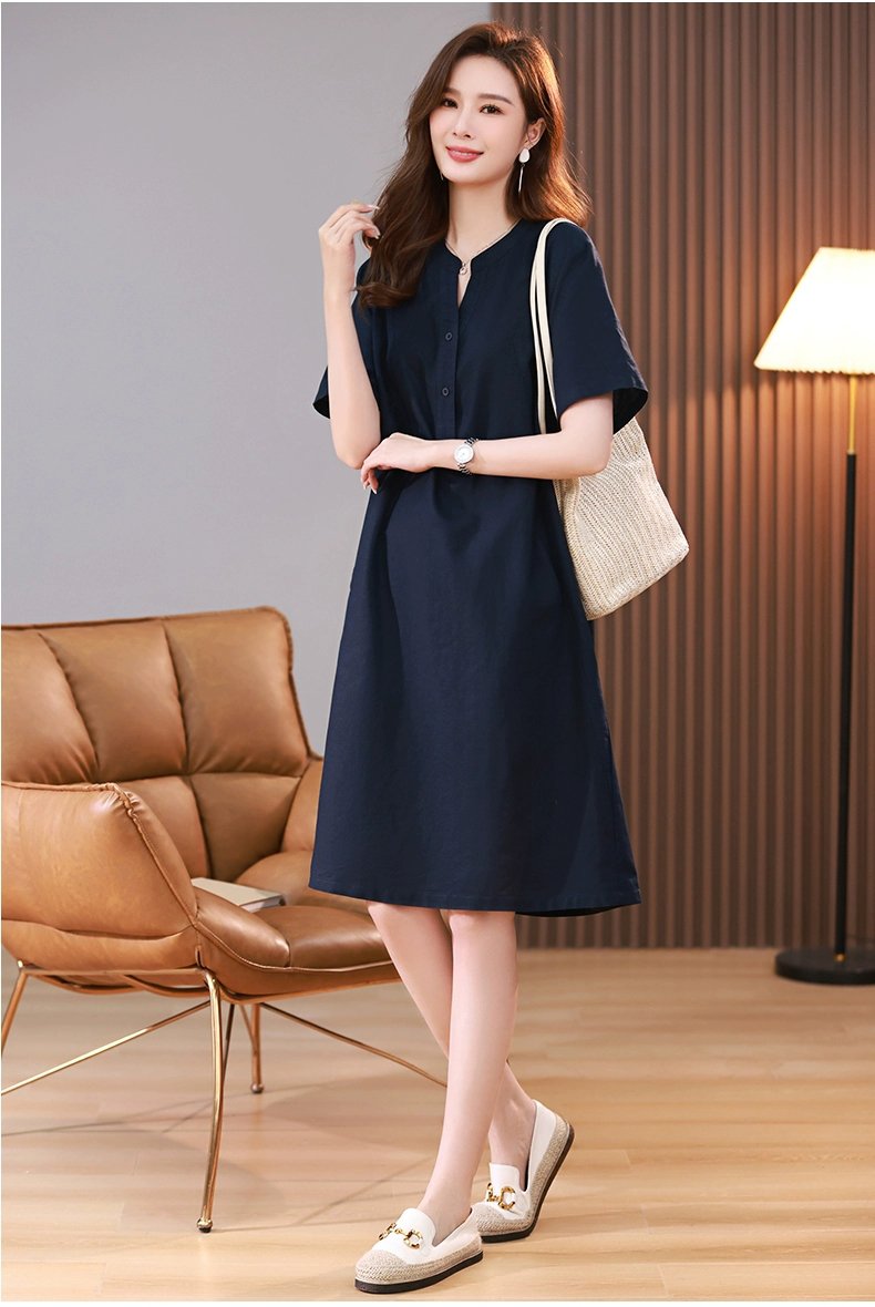 ღ THÔNG TIN SẢN PHẨM:   Tên sản phẩm: Đầm sơ mi xanh navy   Chất liệu: Chất gân ý   Chi tiết sản phẩm: không lót, không túi   Thông số size: S, M, L,