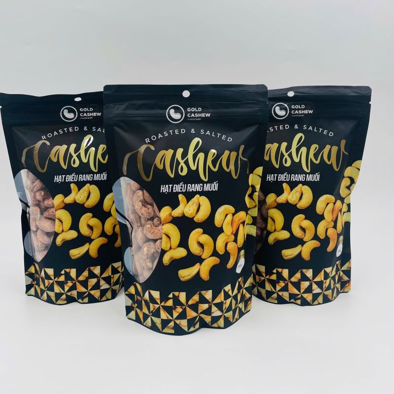 Mua tại TiktokHạt Điều Vỏ Lụa Rang Muối Cao Cấp GOLD CASHEW Từ sự kết hợp kỹ thuật rang tinh thể chuyên biệt, tinh chuẩn lượng muối một cách khắt khe nhằm ngăn ngừa lượng muối dư thừa và không bám trên bề mặt hạt điều, tạo hương vị độc đáo cho sản phẩm Hạt điều Rang Muối Cao Cấp GOLD CASHEW.