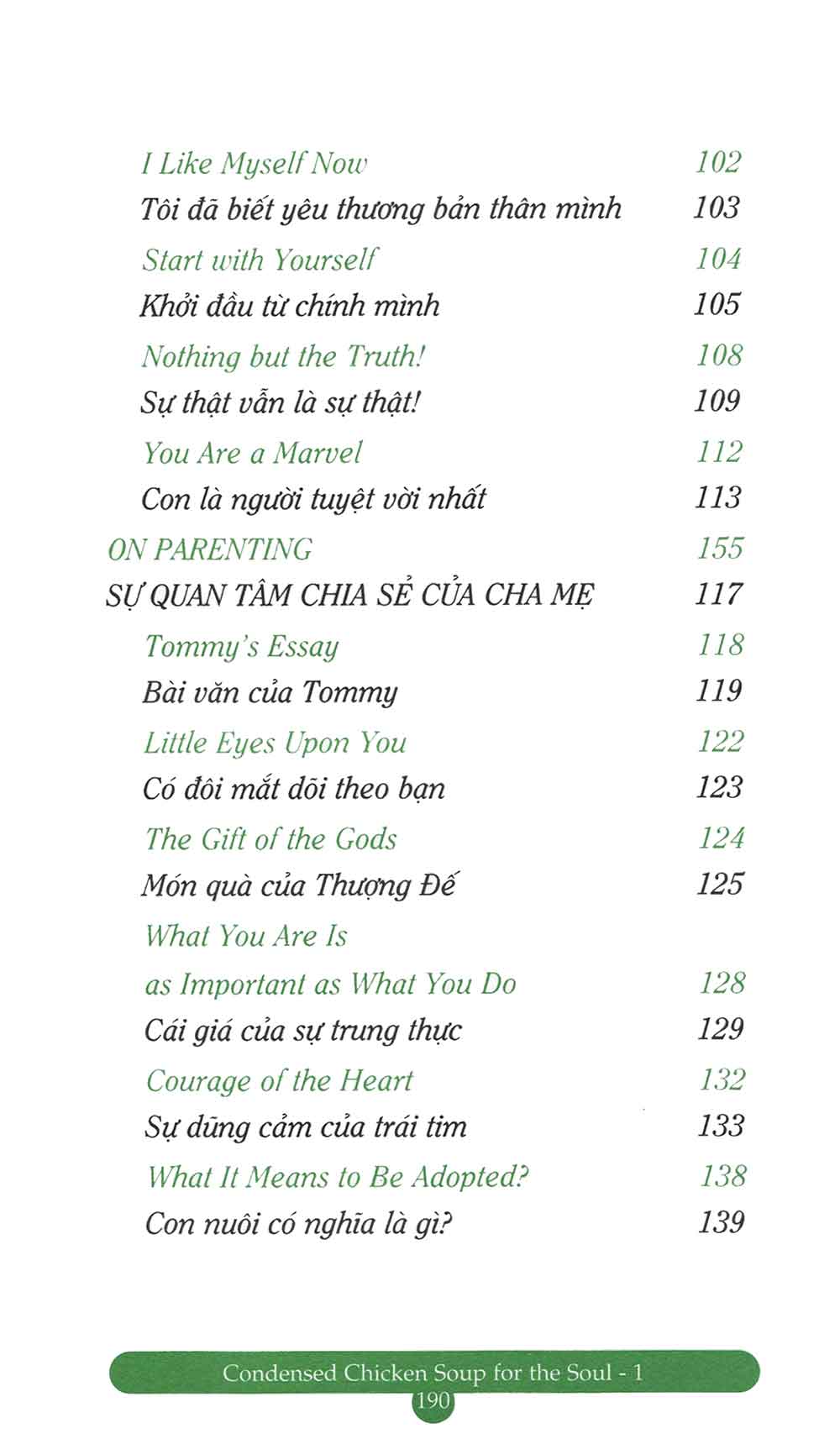 Giá bộ: 316.000 VNĐ ------------ 1. CHICKEN SOUP FOR THE SOUL 4 Công ty phát hành: First News - Trí Việt Tác Giả: Nhiều tác giả Ngày phát hành: 2022 Số trang: 150 trang Kích