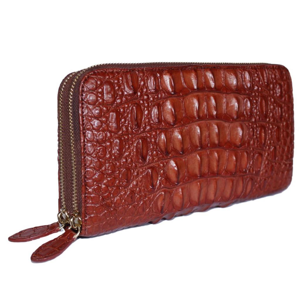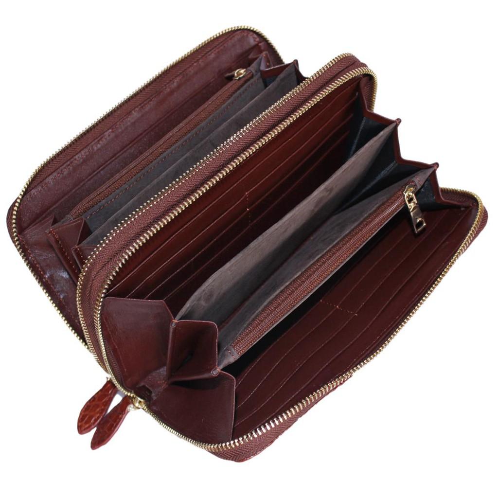✨HC3739 - Ví nữ da cá sấu Huy Hoàng nhiều ngăn gai cầm tay màu nâu đỏ