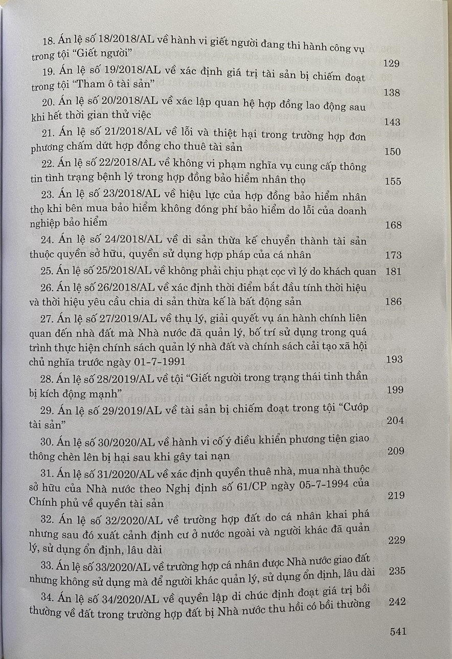 Để thuận tiện cho việc nghiên cứu, tìm hiểu, vận dụng án lệ trong quá trình thực hiện nhiệm vụ xét xử của Tòa án; giúp các cơ quan, tổ chức, cá nhân quan tâm tới hoạt động của Tòa án có thể tiếp cận với các án lệ đã ban hành; tạo nguồn tham khảo cho các hoạt động giảng dạy, nghiên cứu khoa học của các cơ quan, tổ chức, cá nhân, Nhà xuất bân Lao Động cho xuất bản và phát hành cuốn: "Hệ thống Án lệ Việt Nam (Hiện hành) - Từ Án lệ số 01 đến Án lệ số 70".