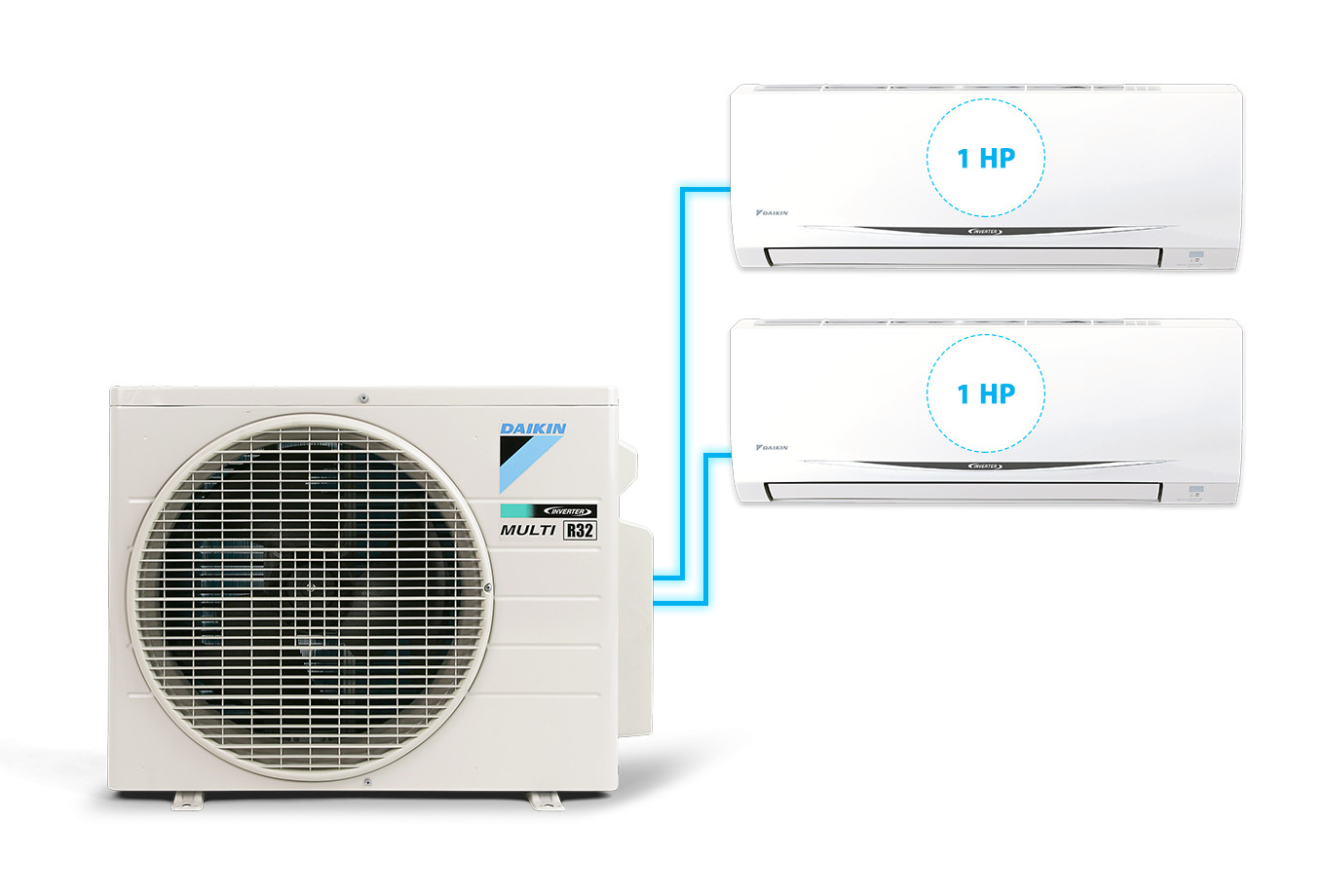Hệ thống điều hòa không khí Multi là máy điều hòa không khí với máy nén đơn (dàn nóng đơn) có thể kết nối với nhiều dàn lạnh. Hệ thống hoàn hảo dành cho các loại nhà nhỏ với không gian lắp đặt dàn nóng hạn chế như chung cư, trả lại không gian ban công cho người sử dụng. Bằng cách giảm số lượng dàn nóng, hệ thống điều hòa không khí Multi cũng góp phần làm giảm độ ồn cùng với việc đi dây điện quá nhiều và nhiệt thải tích tụ gây ra hiện tượng quẩn giócho hệ thống.