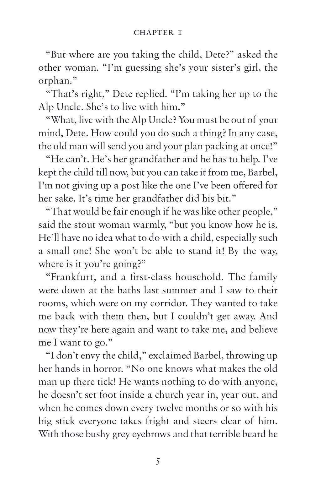 Orphaned at an early age, Heidi has been brought up by her mother's sister Dete in Switzerland. Having been offered a job in Frankfurt, however, her aunt is forced to entrust her young charge into the care of her grandfather, the reclusive Alp-Uncle who lives in the mountains without any interaction with the villagers beneath. The curmudgeonly old man is initially reluctant to accept the new arrangement, but his grand-daughter's warmth, cleverness and exuberance soon win him over, while Heidi learns to love her new surroundings and makes a new friend, Peter the goatherd. But as Heidi gets settled in her new life, little does she suspect that a major upheaval is just around the corner.