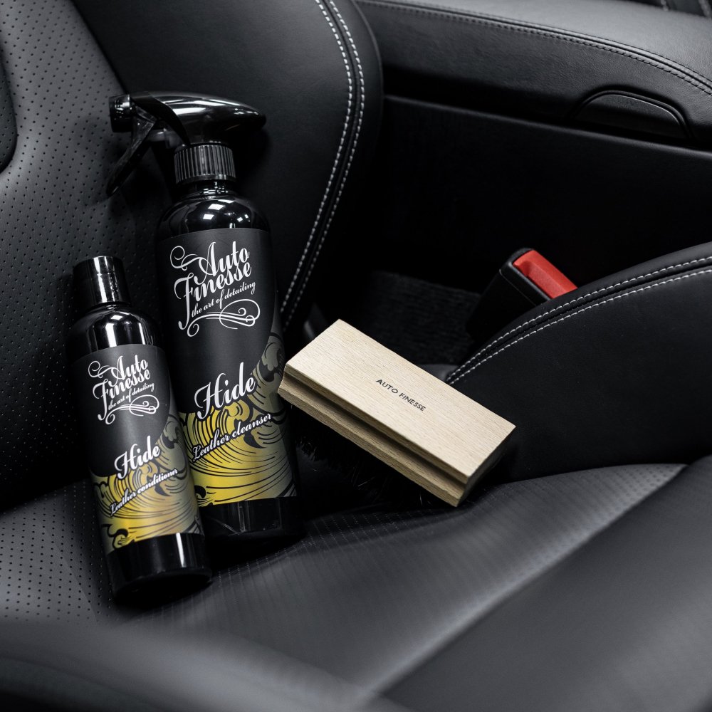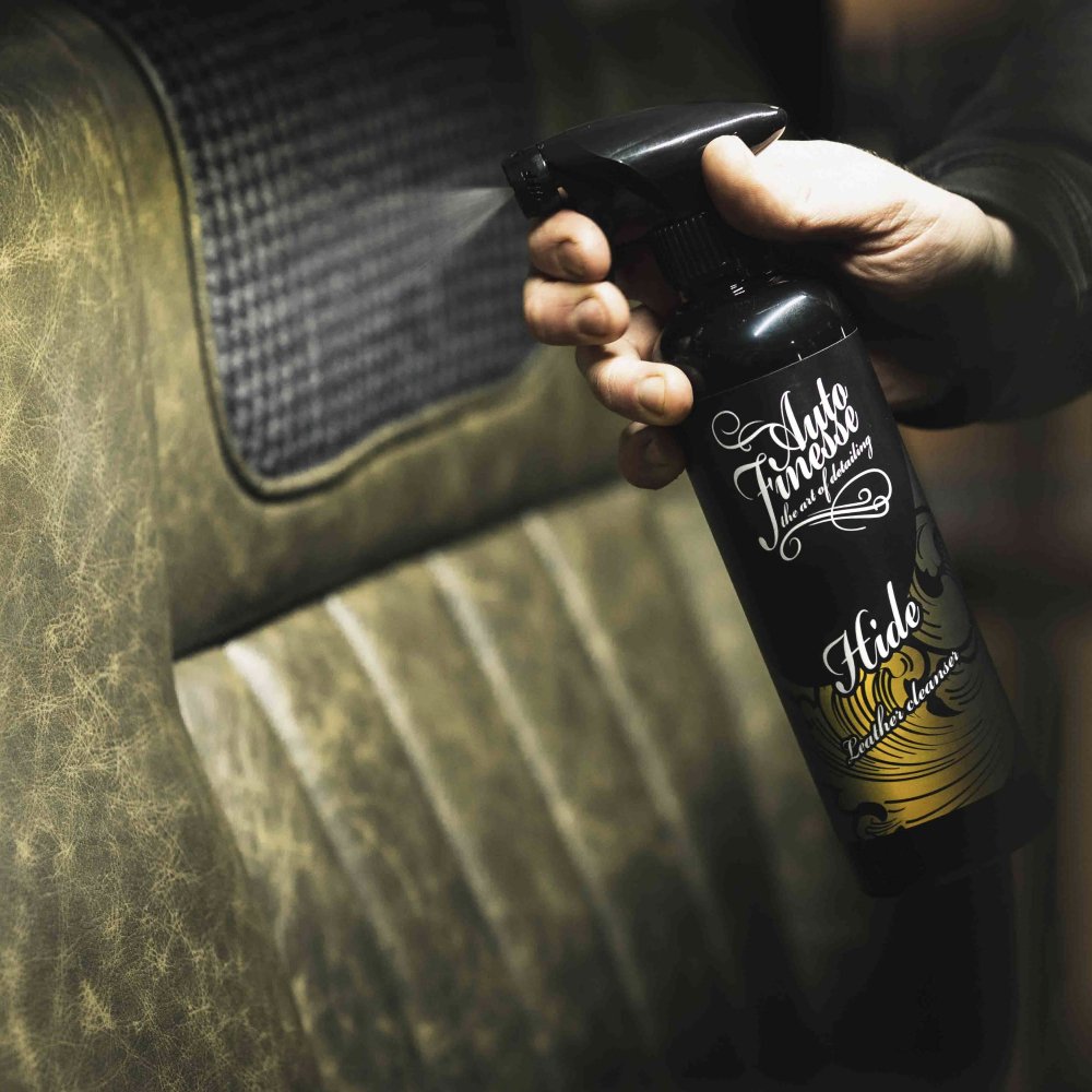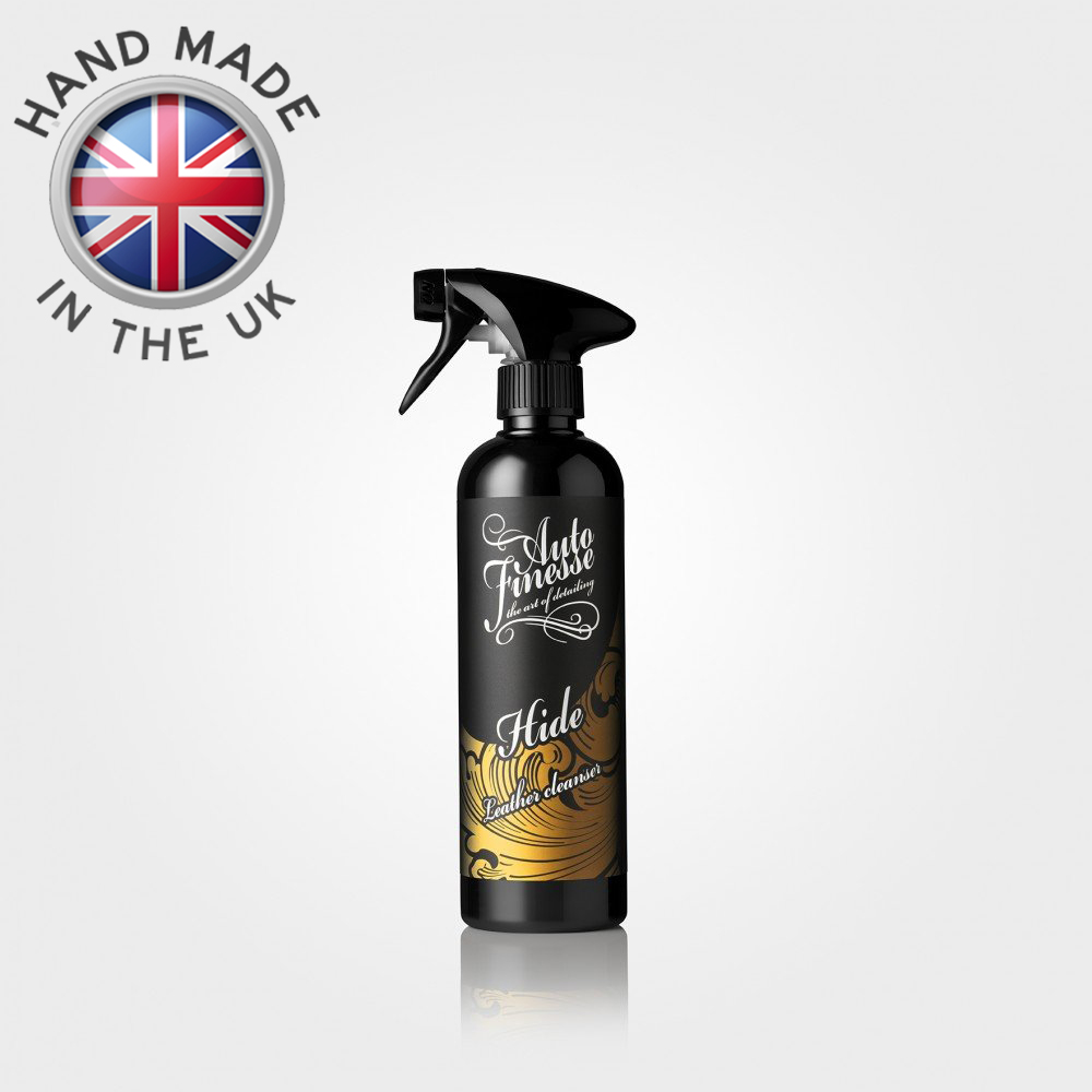 Auto Finesse Hide Leather Cleanser là chất tẩy rửa dịu nhẹ, dựa trên glycerin, được tinh chế đặc biệt để loại bỏ bụi bẩn bám trên các chất liệu da hiện đại một cách an toàn. Sử dụng tốt trên tất cả các loại da hoàn thiện, bán anilin và anilin (còn được gọi là ‘Nappa’, không tráng phủ hoặc tự nhiên.). Hide Leather Cleanser nhanh chóng thâm nhập vào các lỗ trên bề mặt của vật liệu, hút sạch bụi bẩn, vết bẩn và dầu ăn sâu bên dưới lớp da của ghế. Hide Leather Cleanser thậm chí có thể loại bỏ vết thuốc nhuộm trên quần jean, vết xước trên giày và các vết bẩn cứng đầu khác trên ghế da cao cấp.