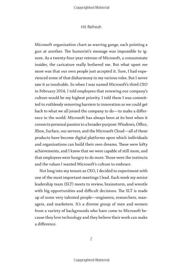 The Quest to Rediscover Microsoft’s Soul and Imagine a Better Future for Everyone Microsoft’s CEO tells the inside story of the company’s continuing transformation, while tracing his own journey from a childhood in India to