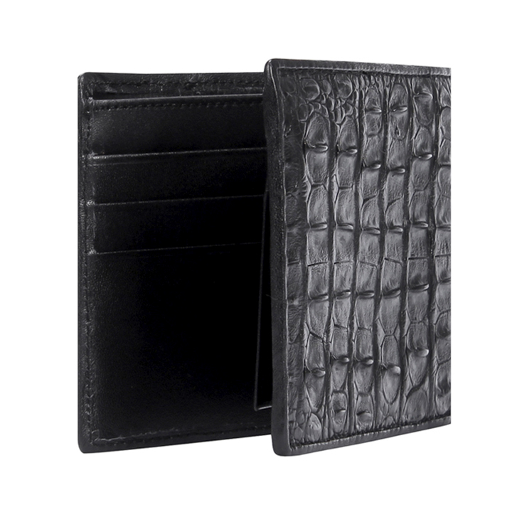 Ví/Bóp nam Huy Hoàng da bò vân cá sấu màu đen 2111