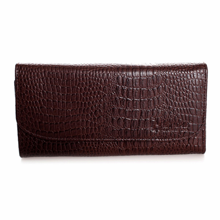 Ví/Bóp nữ vân cá sấu Huy Hoàng bấm nút màu nâu 3110