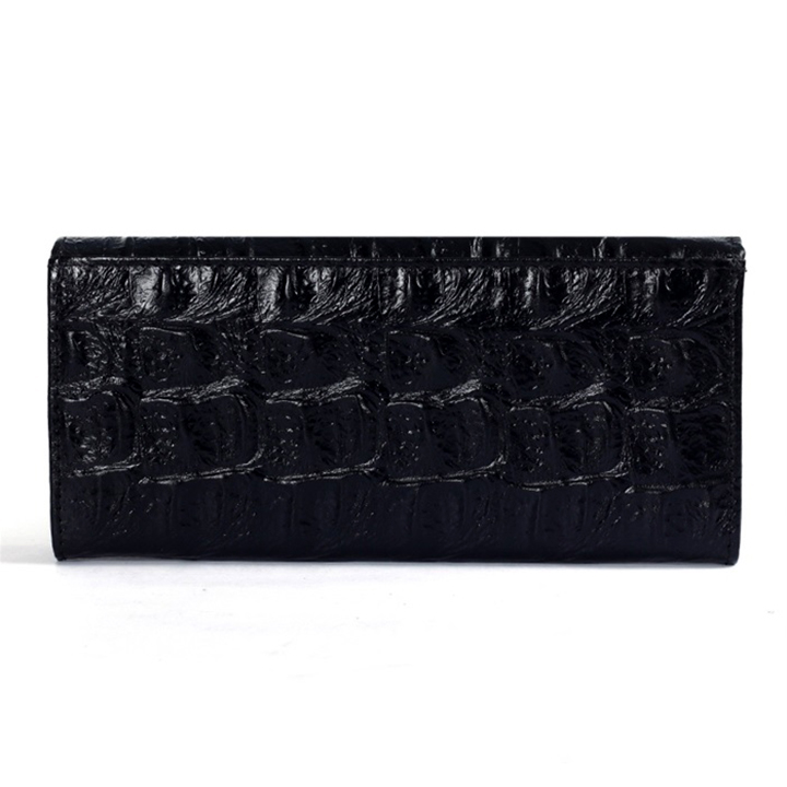 Ví/Bóp nữ da bò vân cá sấu Huy Hoàng 2 gấp màu đen 3116