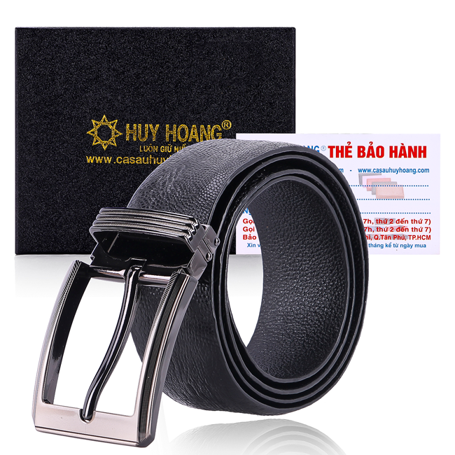 Dây nịt/Thắt lưng nam da bò Huy Hoàng 1m4 đầu tăng 4P màu đen 4144