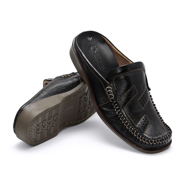 Giày sabo nam Huy Hoàng da bò màu đen 7796
