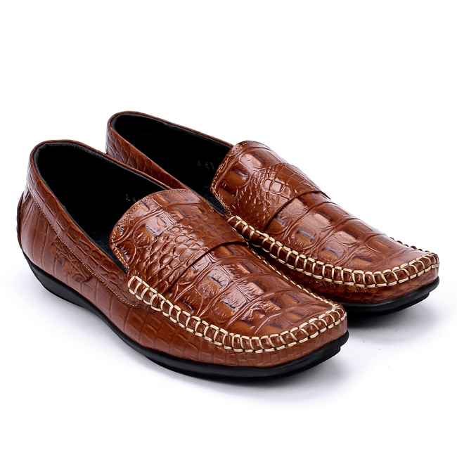 Giày lười nam Huy Hoàng vân cá sấu màu đen 7159
