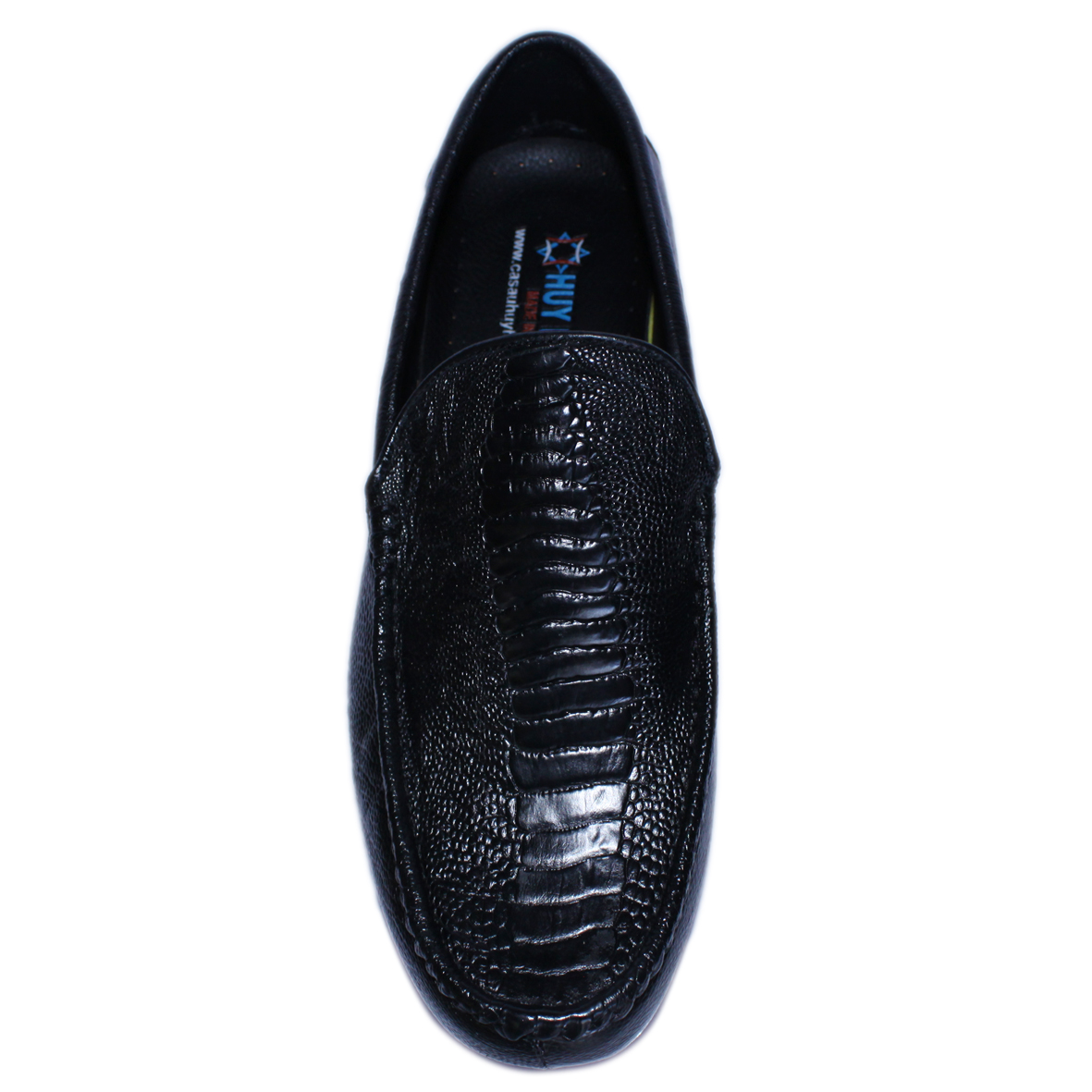 Giày Mọi Nam Da Đà Điểu Vây Chân Màu Đen