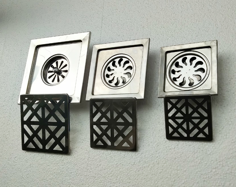 Hố Ga Phểu Thoát Sàn Inox, có 2 mẫu, với kích thước sau: 1. Mẫu phểu dập, dày 0.4mm, kích thước vuông 12cm, 15cm 2. Mẫu phểu đúc, dày 1.2mm, kích thước vuông 10cm, 12cm,