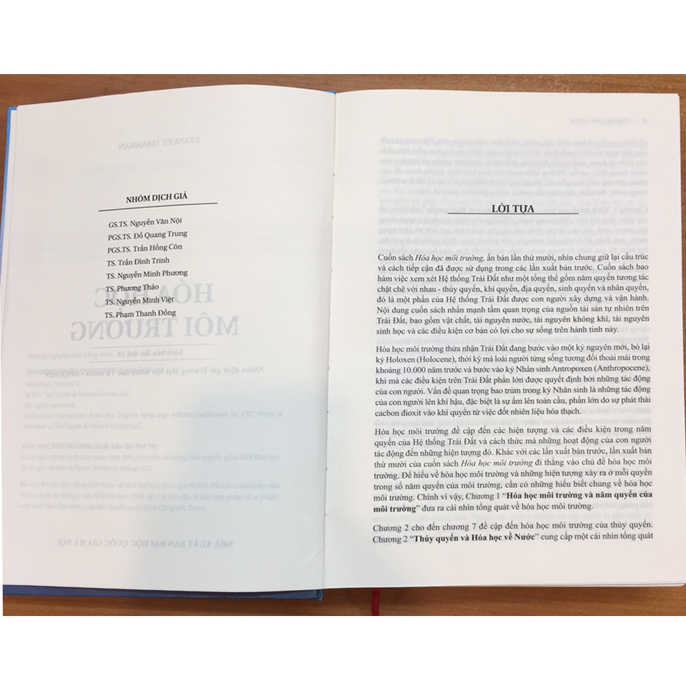 Mua tại TiktokHóa Học Môi Trường (ấn bản lần thứ 10) Tác giả: STANLEY MANAHAN Nhóm dịch giả: Trường Đại học Khoa học Tự nhiên - ĐHQGHN Nhà XB: NXB Đại học Quốc gia Hà Nội Năm XB: 8/2019 - Số trang: 1062 Nội dung cuốn sách nhấn mạnh tầm quan trong của nguồn tài sản tự nhiên trên Trái Đất, bao gồm vật chất, tài nguyên nước, tài nguyên không khí, tài nguyên sinh học và các điều kiện cơ bản có lợi cho sự sống trên hành tinh nà