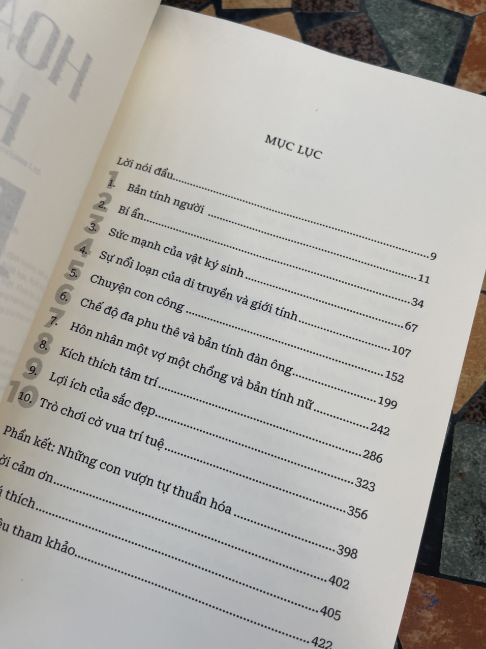 Cuốn sách gồm 10 chương, chia nội dung làm 2 phần tiến hóa và bản tính người. Ba phần đầu tiên của cuốn sách này là nói về tiến hóa, vì hiểu biết nền tảng về tiến hóa là quan trọng. Nhưng nếu như không thích các vấn đề về Gen thì các bạn cũng có thể tiến tới ngay các phần sau giải đáp hàng tá các thắc mắc rất thực tế trong xã hội về bản tính người, như: về sự khác biệt giữa giới tính nam và nữ, bản chất tìnk d.ụ ở loài người, tìnk d.ụ đồng giới, bản tính đàn ông và chế độ đa thê, bản tính nữ và chế độ một vợ một chồng hay tại sao đàn ông giàu có lại kết hôn với phụ nữ xinh đẹp?