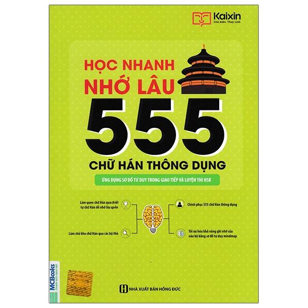 Cuốn sách Học Nhanh Nhớ Lâu 555 Chữ hán Thông Dụng sẽ giúp bạn HỌC NHANH – NHỚ LÂU từ vựng tiếng Trung để có thể sử dụng trong cuộc sống hằng ngày cũng như phục vụ cho việc ôn luyện kỳ thi năng lực Hán ngữ HSK.
