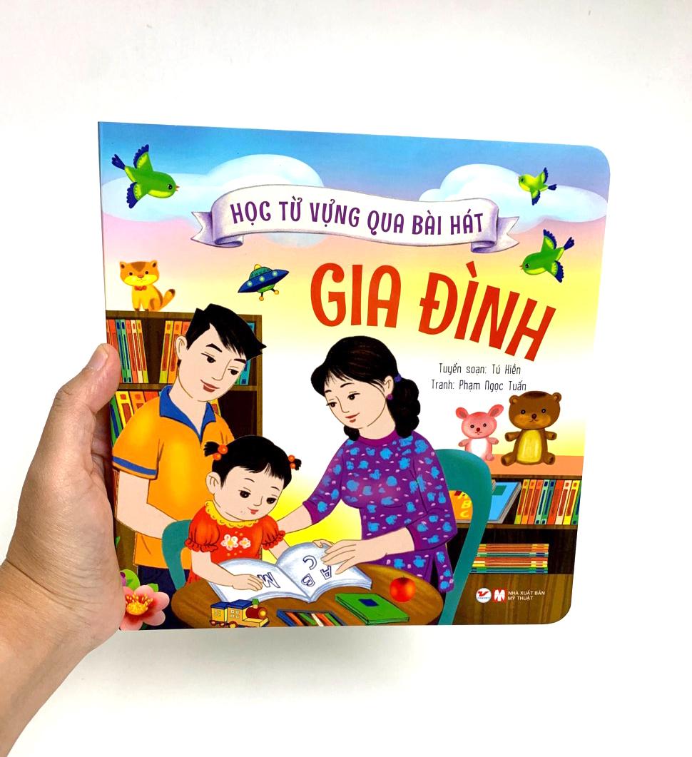 Mua tại TiktokTình cảm gia đình được thể hiện qua các bài hát như “Cháu yêu bà”, “Cả nhà thương nhau”, “Bàn tay mẹ”, “Bố là tất cả”, “Ba ngọn nến lung linh”… Trẻ nhỏ khi học hát những ca khúc ấy sẽ vừa cảm nhận rõ tình yêu thương giữa các thành viên trong gia đình, vừa hình thành vốn từ vựng xoay quanh chủ đề gia đình. Sau mỗi bài hát là phần câu hỏi đặt ra để bé phát triển tư duy. Chẳng hạn, ở ca khúc “Ba ngọn nến lung linh”, bé sẽ phải trả lời các câu hỏi như: Các màu sắc tương ứng với từng cây nến, Đối với bé thì gia đình là nơi như thế nào?