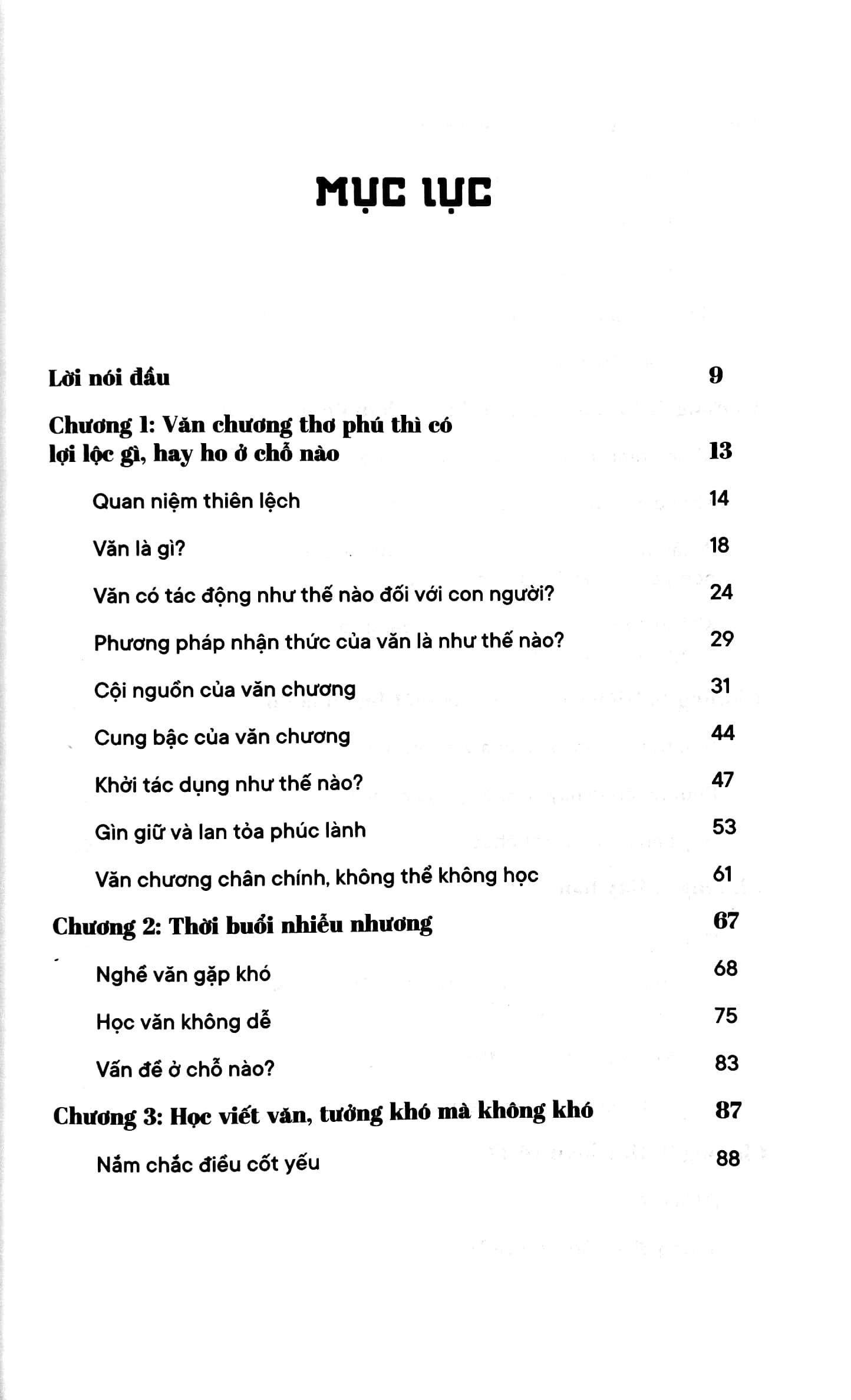 Tôi thấy một số người không nhận ra chân tướng thật sự của môn văn nên lỡ mất cơ duyên phúc lành; cũng có những người thành tâm muốn học văn chương một cách nghiêm túc mà bị lạc lối, hao tổn rất nhiều công phu mà không gặt hái được thành quả gì. Vậy nên tôi mạnh dạn viết ra đây chút nhận thức sơ sài của m.ình, hy vọng rằng một vài bạn đọc hữu duyên sẽ tìm thấy trong đó đôi ba điều bổ ích. Ít nhất bạn có thể nhận ra chân tướng thật sự của văn chương mà sẽ cân nhắc lại, đặt việc học văn và viết văn ở một vị trí xứng đáng hơn. Thứ hai, nếu các bạn có điều gì đó không hài lòng với việc học văn của m.ình, vậy thì tôi mời bạn tham khảo phương pháp lý luận và lập dàn ý mà tôi đề xuất ở đây. Có thể việc học và viết văn của các bạn sẽ đột phá, tinh tấn; đạt đến được một cái đích chân chính và gặt hái được những thành quả có ý nghĩa.