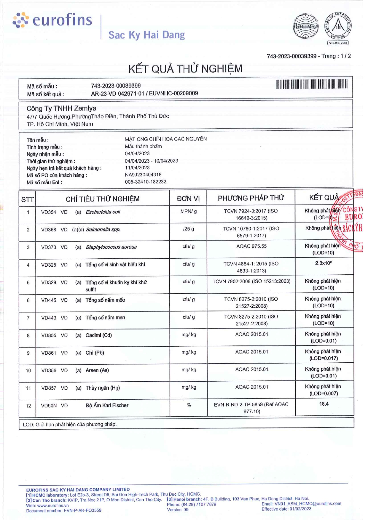 Mật ong Rừng Nhiệt Đới và Honimore là 2 thương hiệu thuộc sở hữu của Công ty TNHH Zemlya, với hơn 40 năm kinh nghiệm trong sản xuất mật ong. Các sản phẩm thuộc 2 thương hiệu này hiện đã có mặt ở tất cả các hệ thống siêu thị lớn của Việt Nam và nước ngoài. -------------------------------------------------------------------------- I. THÔNG TIN SẢN PHẨM - Tên sản phẩm: Mật ong Chanh - Thương hiệu: Rừng Nhiệt Đới - Khu vực khai thác: Các cánh rừng ở khắp 3 miền - Thành phần: 93% mật ong chín và 7% bột chanh - Nhà sản xuất: Công ty TNHH Zemlya (129/3 đường 154, phường Tân Phú, Thành phố Thủ Đức, Tp.HCM) - Quy cách đóng gói: chai thủy tinh - Khối lượng: 360g/chai - Hạn sử dụng: 2 năm kể từ ngày sản xuất - Chứng nhận Vệ sinh an toàn thực phẩm số 2857/2023/BQLATTPHCM do Ban quản lí An toàn thực phẩm TPHCM cấp ngày 18/07/2023 - Giấy kiểm nghiệm số AR-23-VD-065594-01 được cấp bởi Eurofins II. ĐẶC ĐIỂM NỔI BẬT Mật ong chanh là sản phẩm tiện lợi 2 trong 1, là sự kết hợp tinh túy