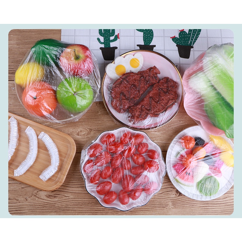 Set 100 Cái Màng Bọc Thực Phẩm Có Chun Co Giãn Tái Sử Dụng Được Nhiều Lần Đựng Trong Túi Gấu Dây Rút