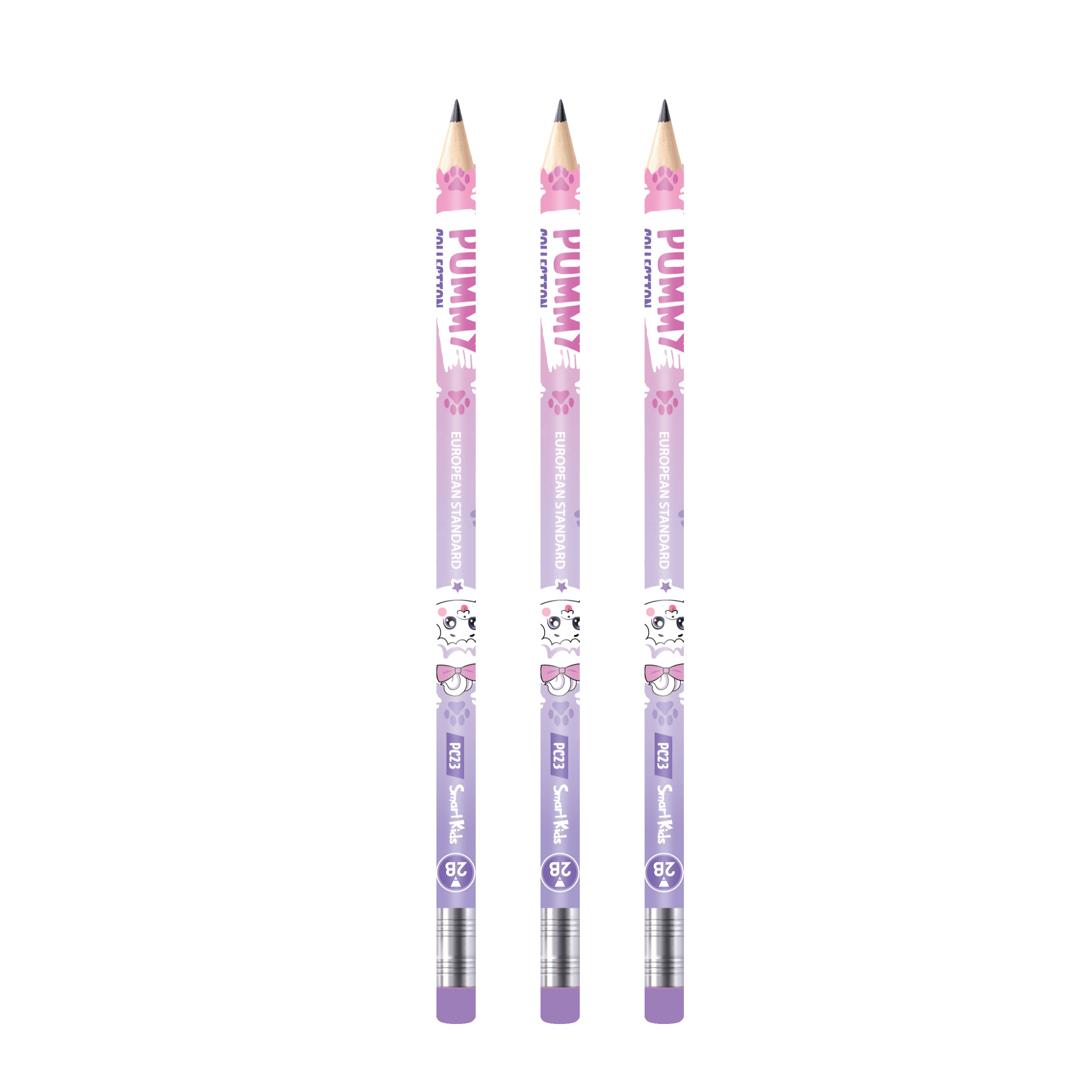 Bút chì đen 2B Pommy Collection Smart Kids PC23 (12 cây/hộp) - Ruột bút chì chất lượng, gỗ mềm dễ chuốt, thân in hình bắt mắt, có gôm tiện dụng. - Thân tam giác dễ