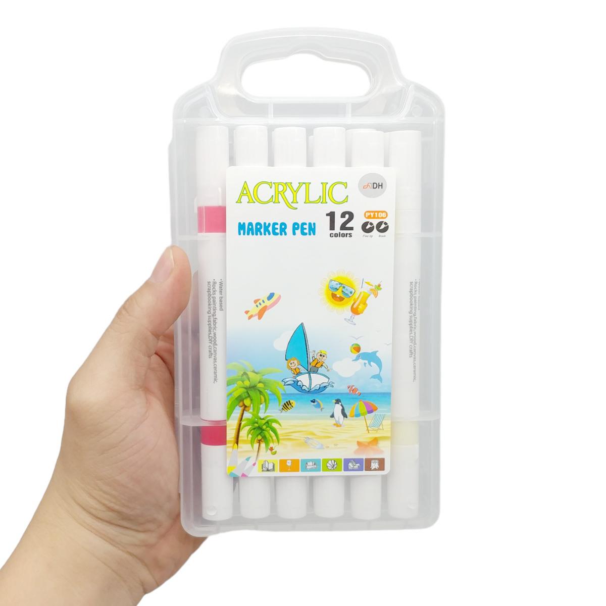 Mua tại TiktokHộp 12 Bút Lông Màu 2 Đầu Acrylic Marker Pen - DH PY106