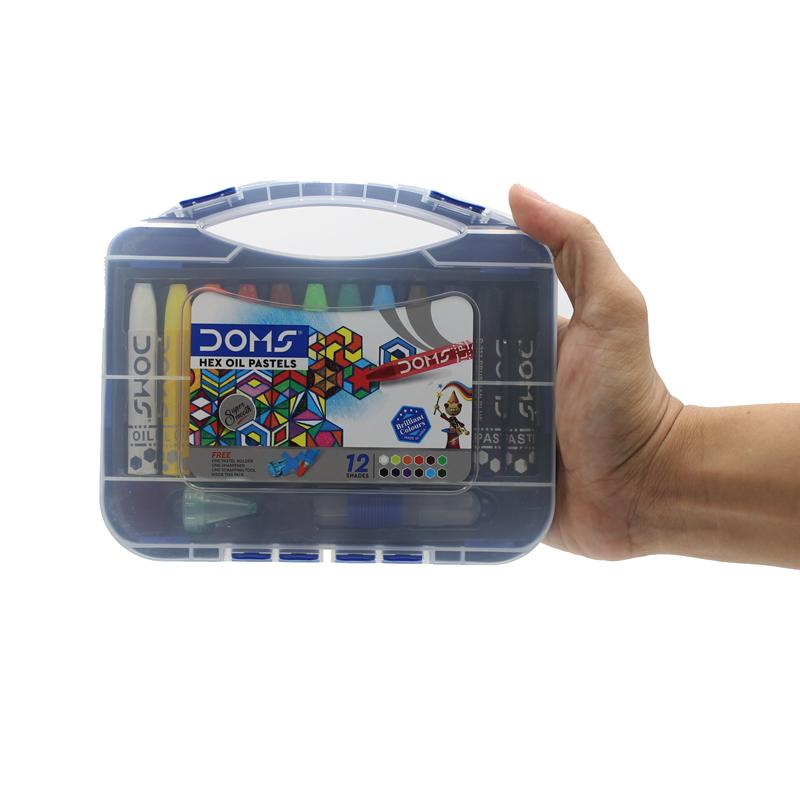 Hộp 12 Bút Sáp Dầu Hex Oil Pastels - DOMS 8414 Bút sáp dầu được làm từ nguyên liệu cao cấp, cho màu sắc chuẩn, tự nhiên, tươi sáng như thật, có độ bám giấy