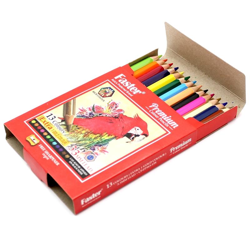 Hộp 13 Bút Chì Màu Nhỏ Premium - Faster CP-FP383-13S Sản phẩm bao gồm 13 sắc màu sinh động, cho tone màu rất chuẩn, màu sắc tươi sáng, độ phủ cao. Khi tô, chất màu