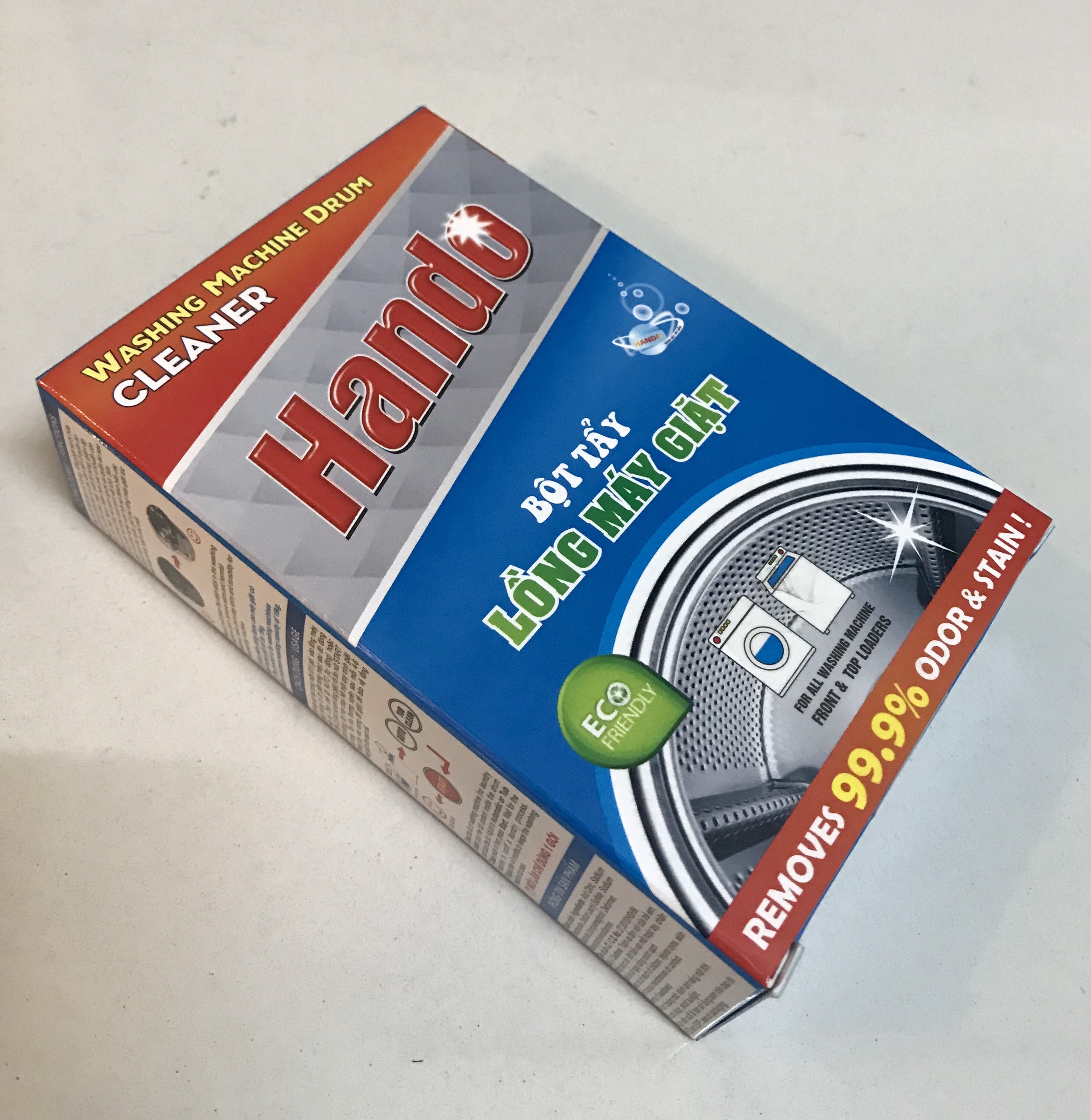 Thông tin sản phẩmTên sản phẩm : Tẩy lồng máy giặt HandoHướng dẫn sử dụng : Cho 2 đến 3 gói nhỏ bột vào lượng nước khoảng 1/6 thùng giặt, sau đó ngâm 4 đến
