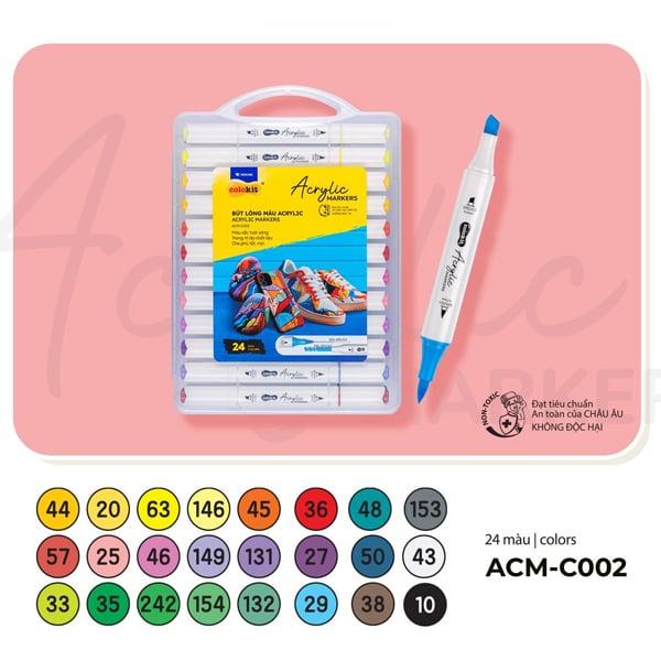 Hộp 24 Bút Lông Màu Acrylic Markers 2 Đầu - Colokit ACM-C002 với thiết kế đầu BROAD tiện lợi và đầu BRUSH linh hoạt đáp ứng được đa dạng nhu cầu sử dụng. Bút màu