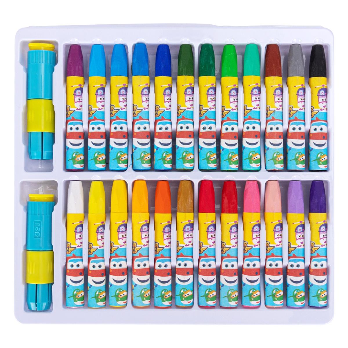 Mua tại TiktokHộp 24 Bút Màu Sáp Kèm Cây Cầm Bút & Đồ Chuốt 2 Trong 1 - SuperWings - Deli EC009-24