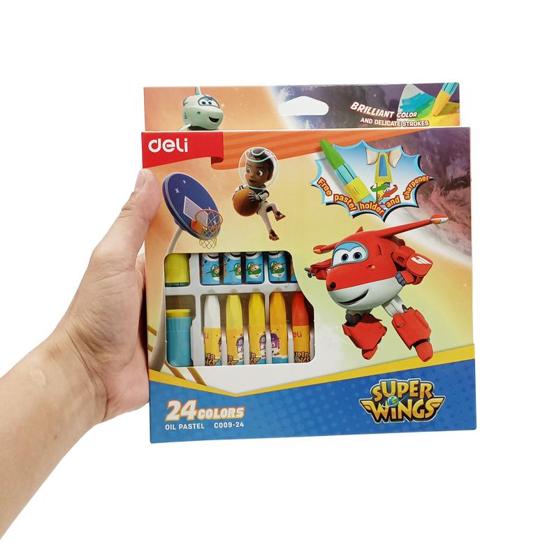 ✨Hộp 24 Bút Màu Sáp Kèm Cây Cầm Bút & Đồ Chuốt 2 Trong 1 - SuperWings - Deli EC009-24