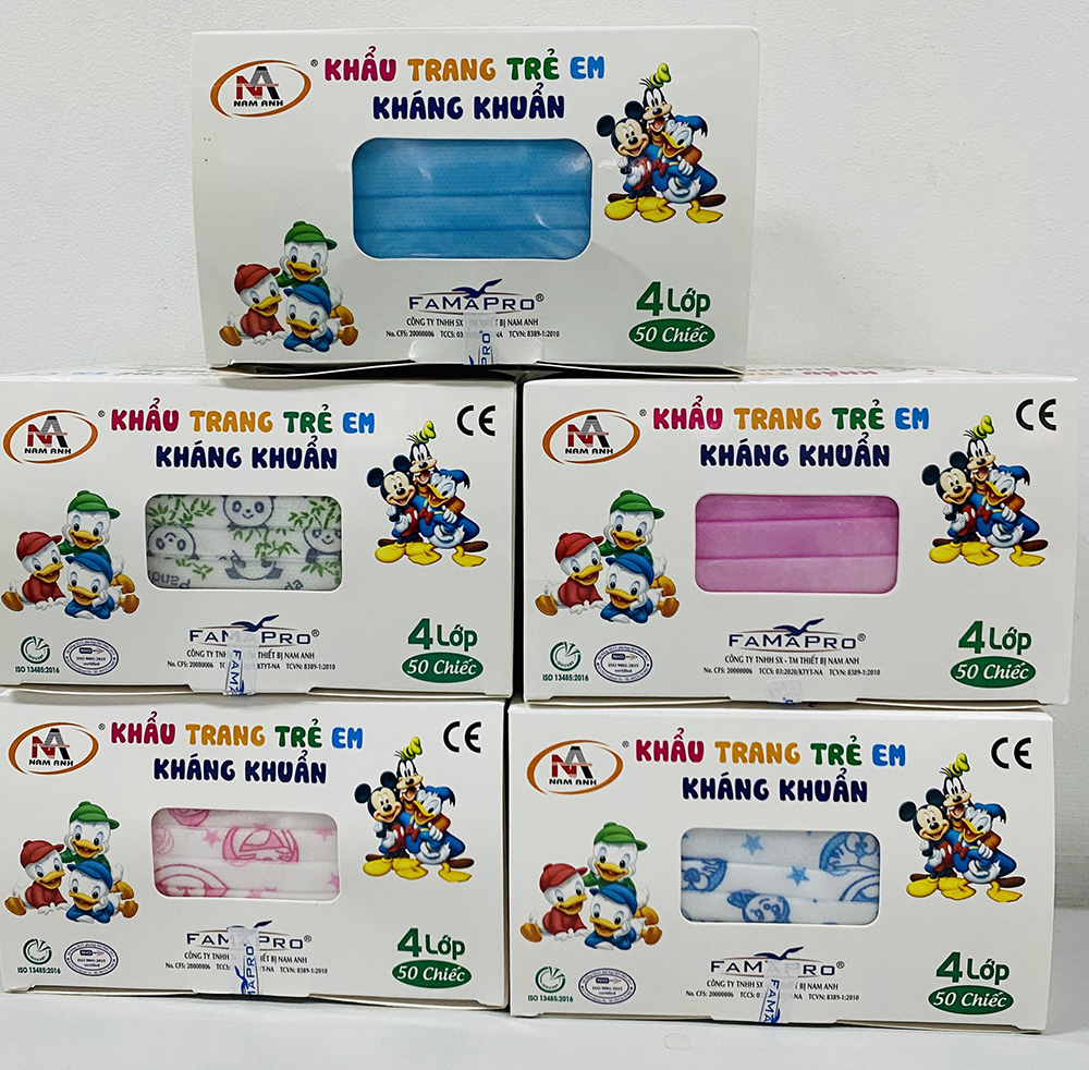 ✨Hộp 50 Khẩu Trang Trẻ Em Kháng Khuẩn FAMAPRO 4 Lớp