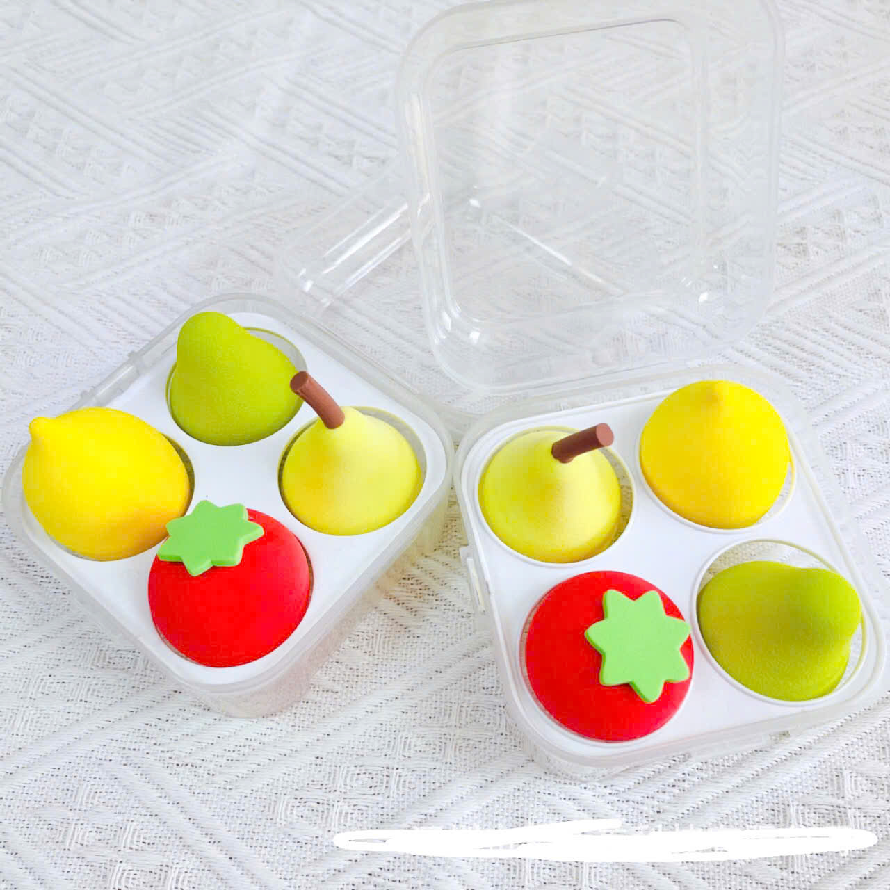 ✨Hộp bông tán phấn trang điểm 4 món hình trái cây , siêu dễ thương mềm mịn , xinh xắn đáng yêu ,có hộp đựng tiện dụng