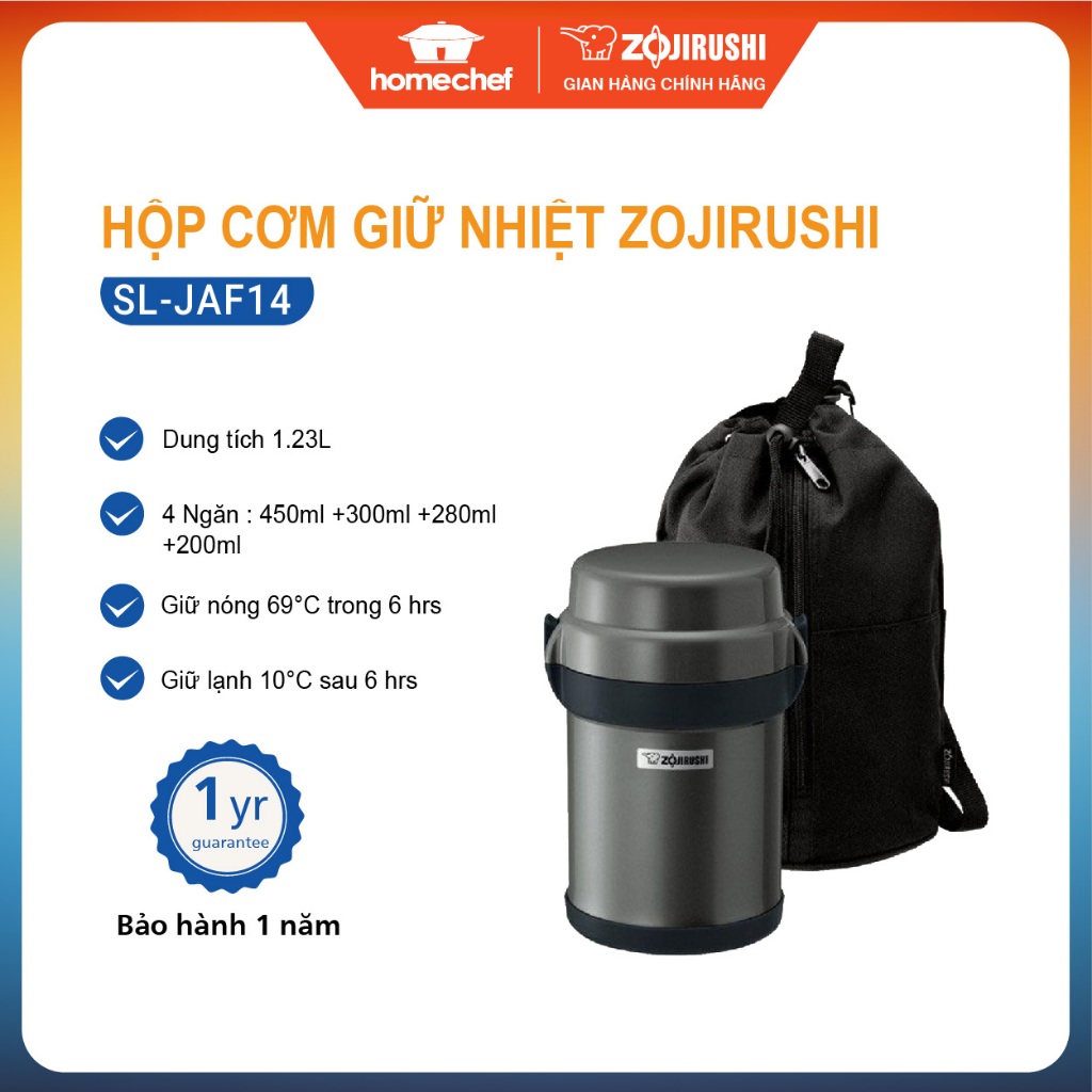 Hộp Cơm Giữ Nhiệt Zojirushi SL-JAF14 với bình chứa làm bằng chất liệu thép không gỉ cao cấp bền đẹp, giúp giữ nhiệt cực tốt, và mang lại giá trị sử dụng lâu dài.